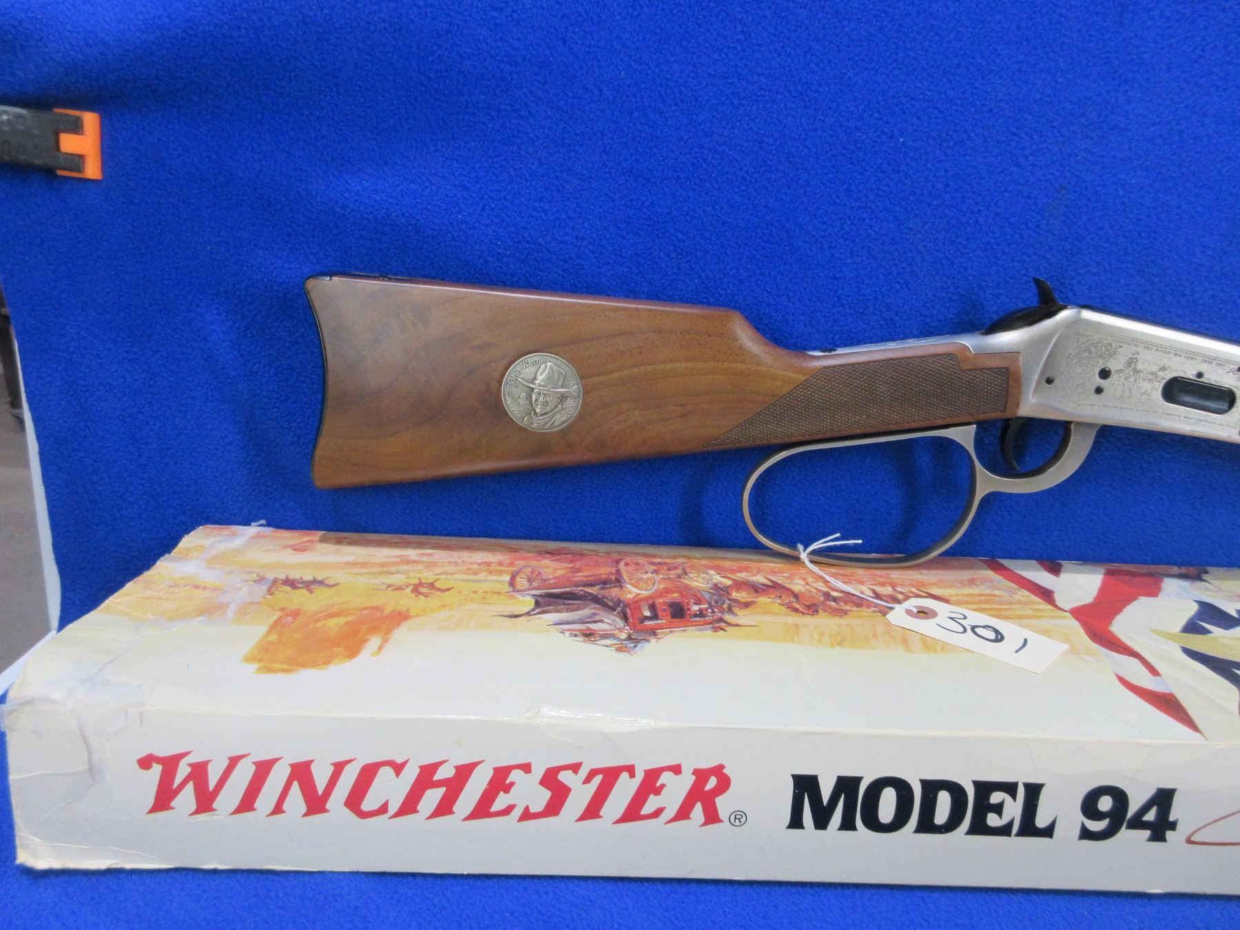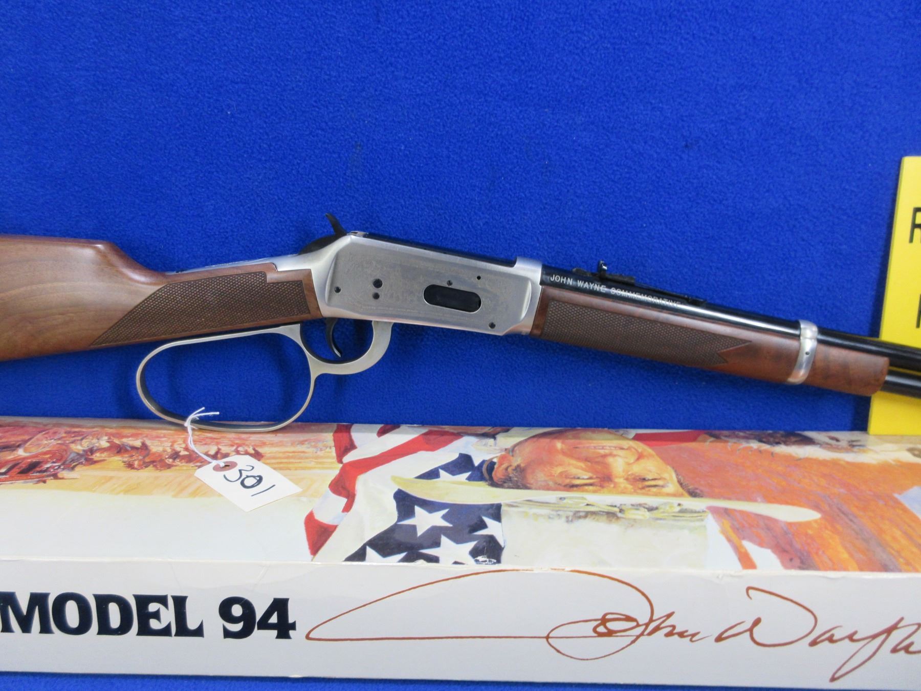 Non-Restricted - Winchester John Wayne Commemorative Model 94 in 32-40 Win - This lever action rifle with tube magazine appears to be new and unfired. Barrel is 18 1/2"", rifling is very good, bluing is good to very good, has both sights, stock and forearm are very good, butt plate very good, comes with original box and paperwork. Ser #JW22311