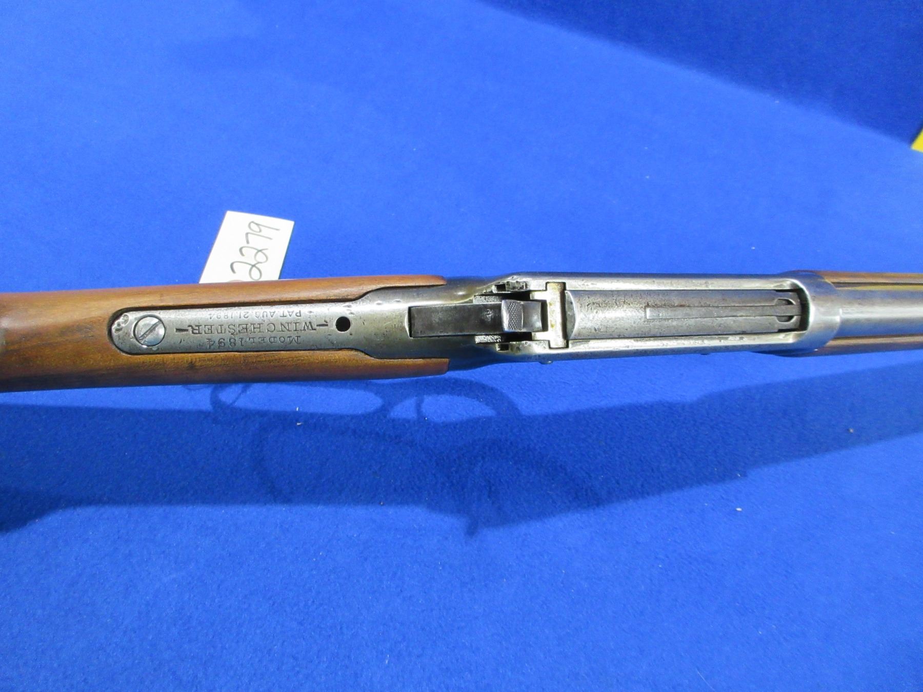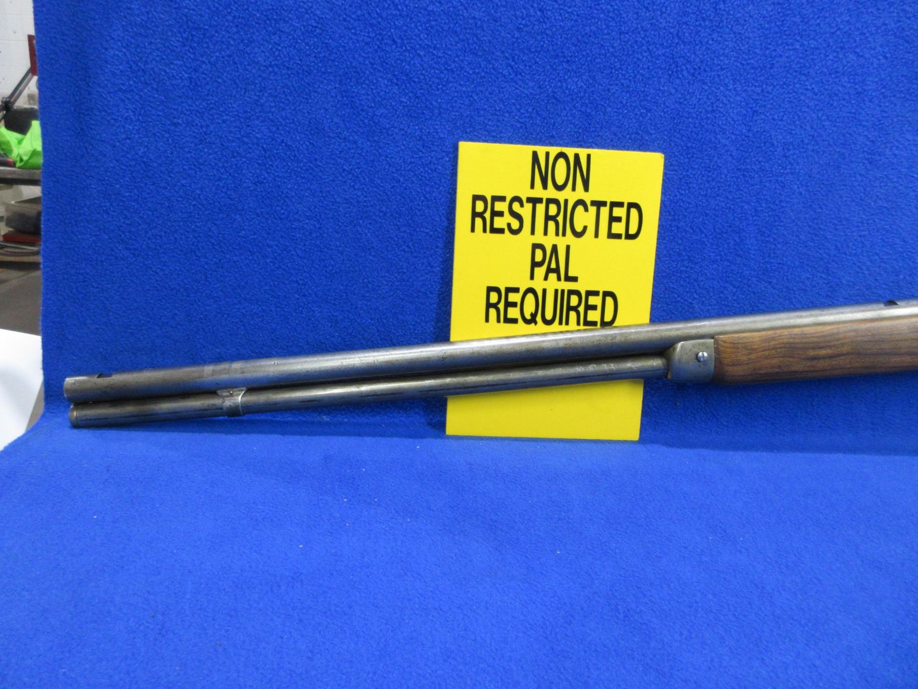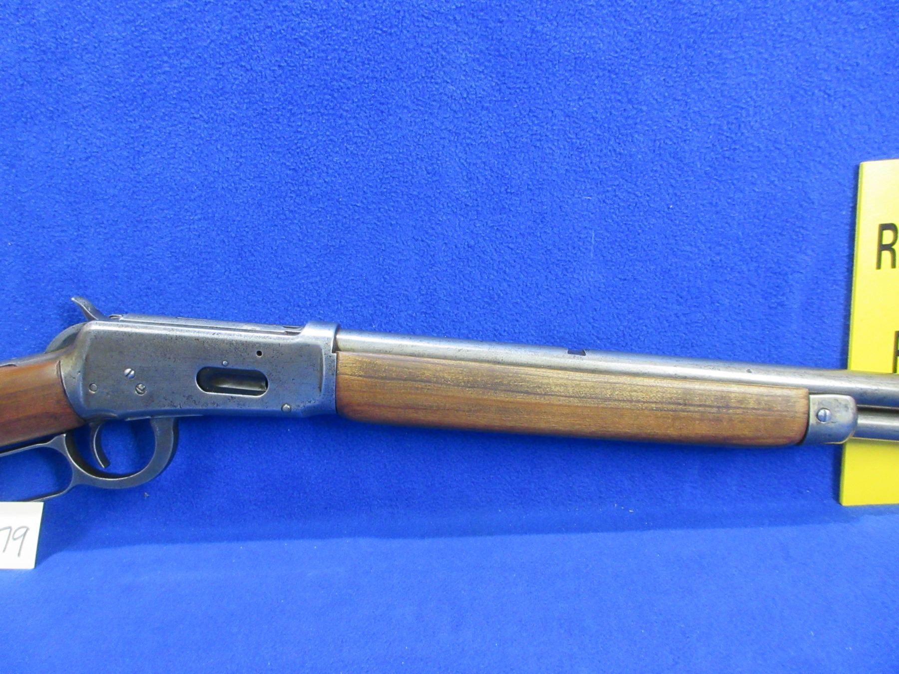 Non-Restricted - Winchester Model 94 in 38-55 Win - This lever action rifle with tube magazine appears to be in working order but action is very stiff (may need cleaning). Barrel is 26", rifling is poor, bluing is gone with pitting, sights are missing, stock and forearm are good with usage marks, crescent metal butt plate good. Ser #3515