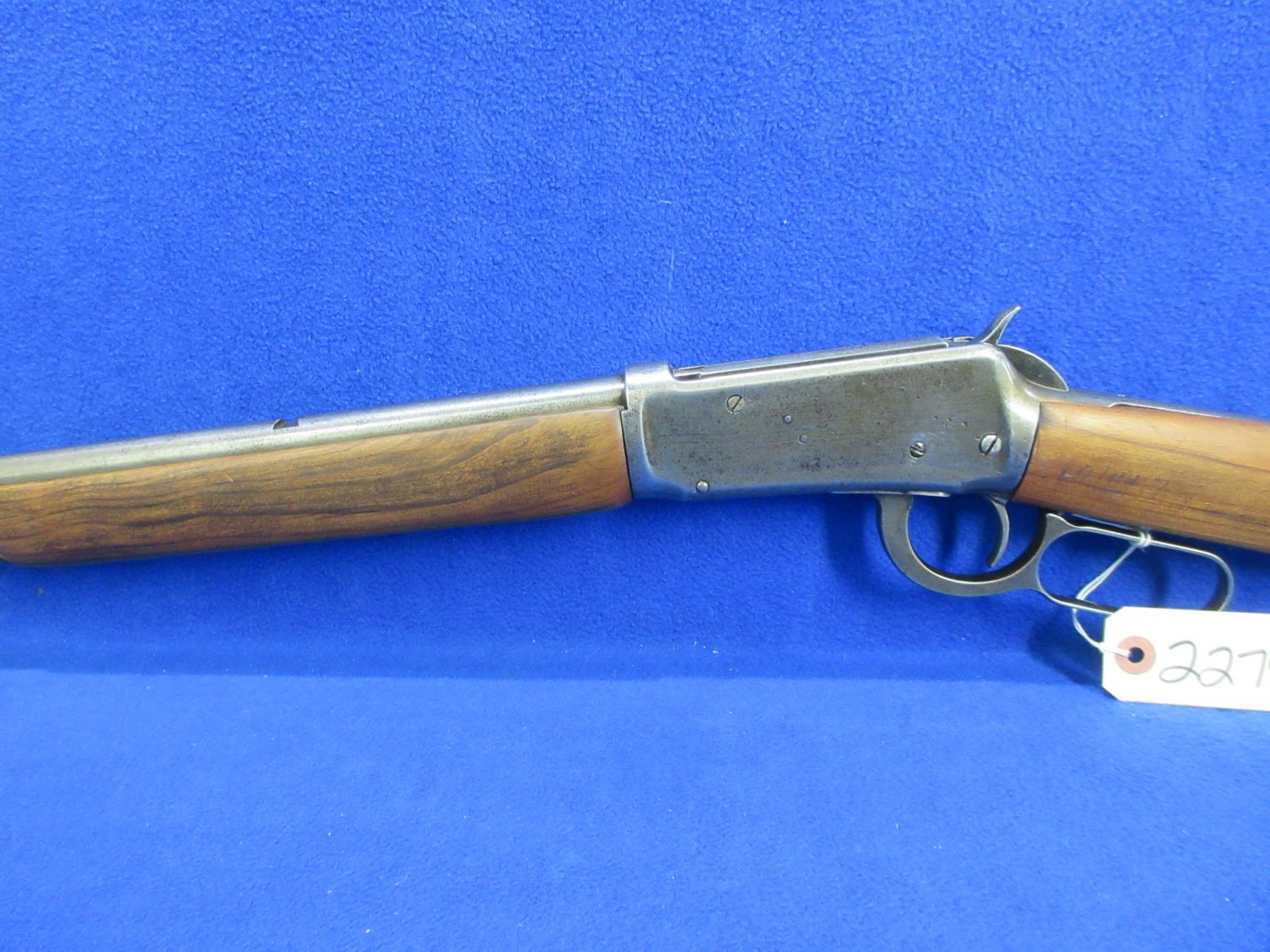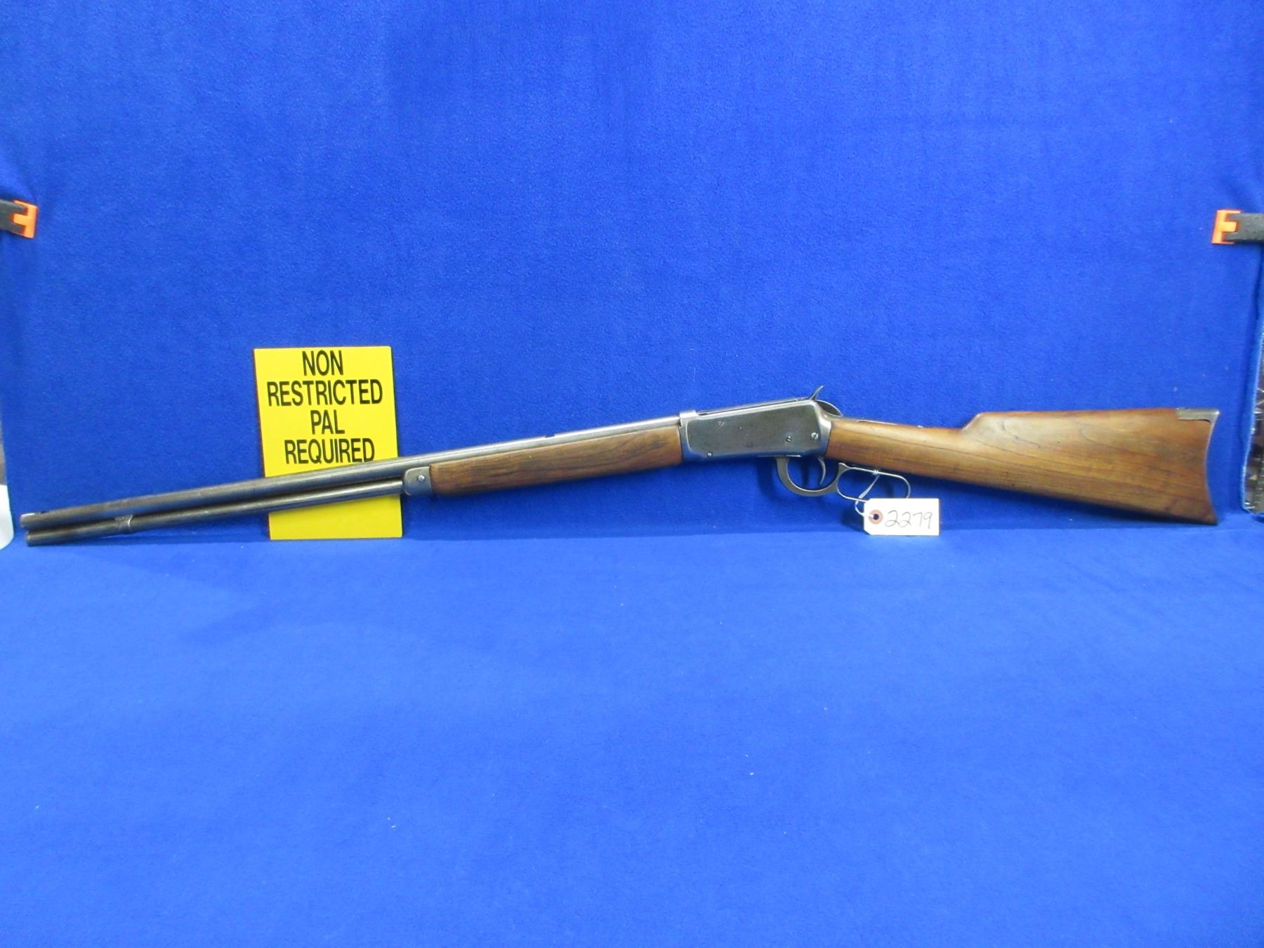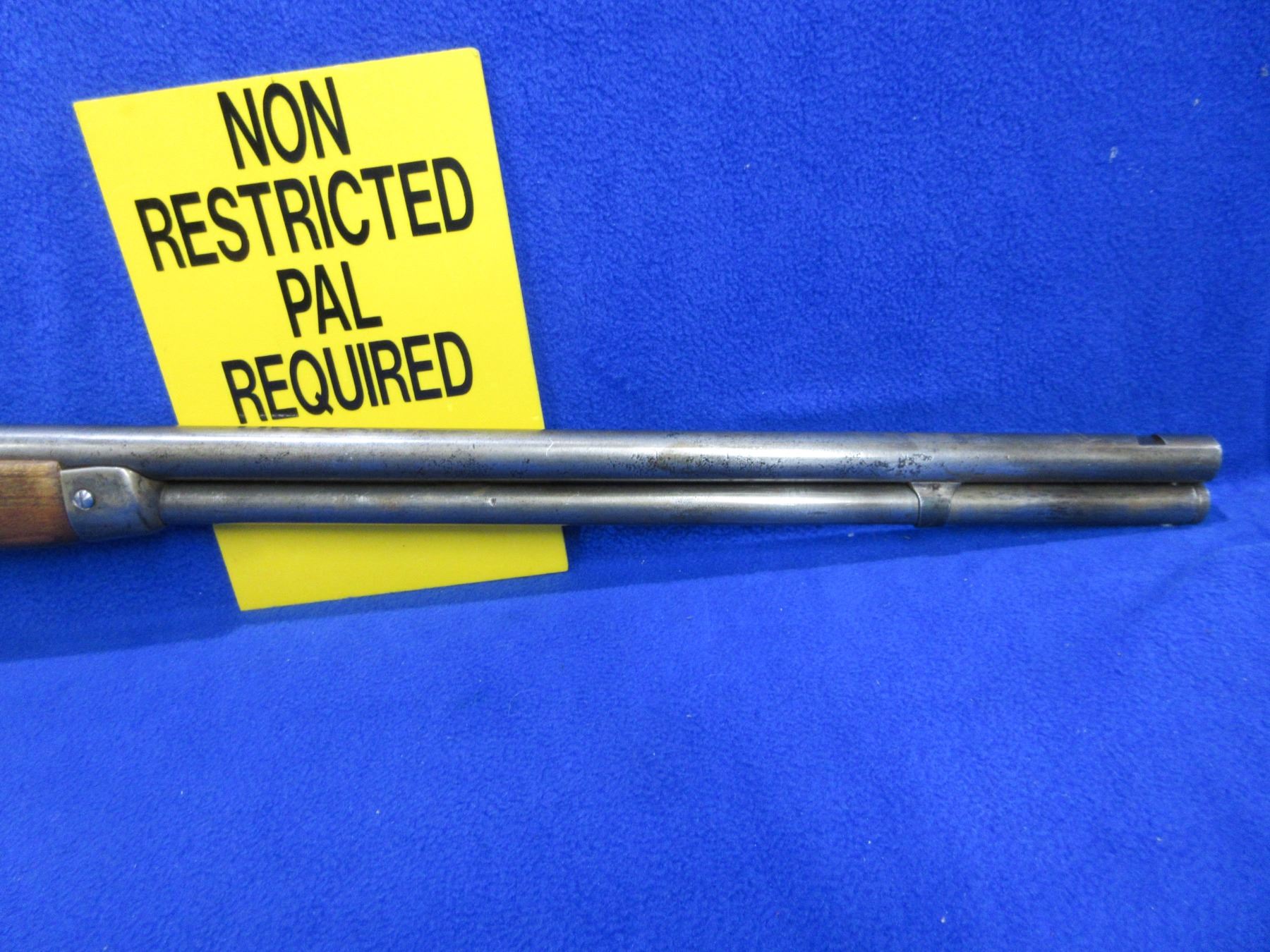Non-Restricted - Winchester Model 94 in 38-55 Win - This lever action rifle with tube magazine appears to be in working order but action is very stiff (may need cleaning). Barrel is 26", rifling is poor, bluing is gone with pitting, sights are missing, stock and forearm are good with usage marks, crescent metal butt plate good. Ser #3515