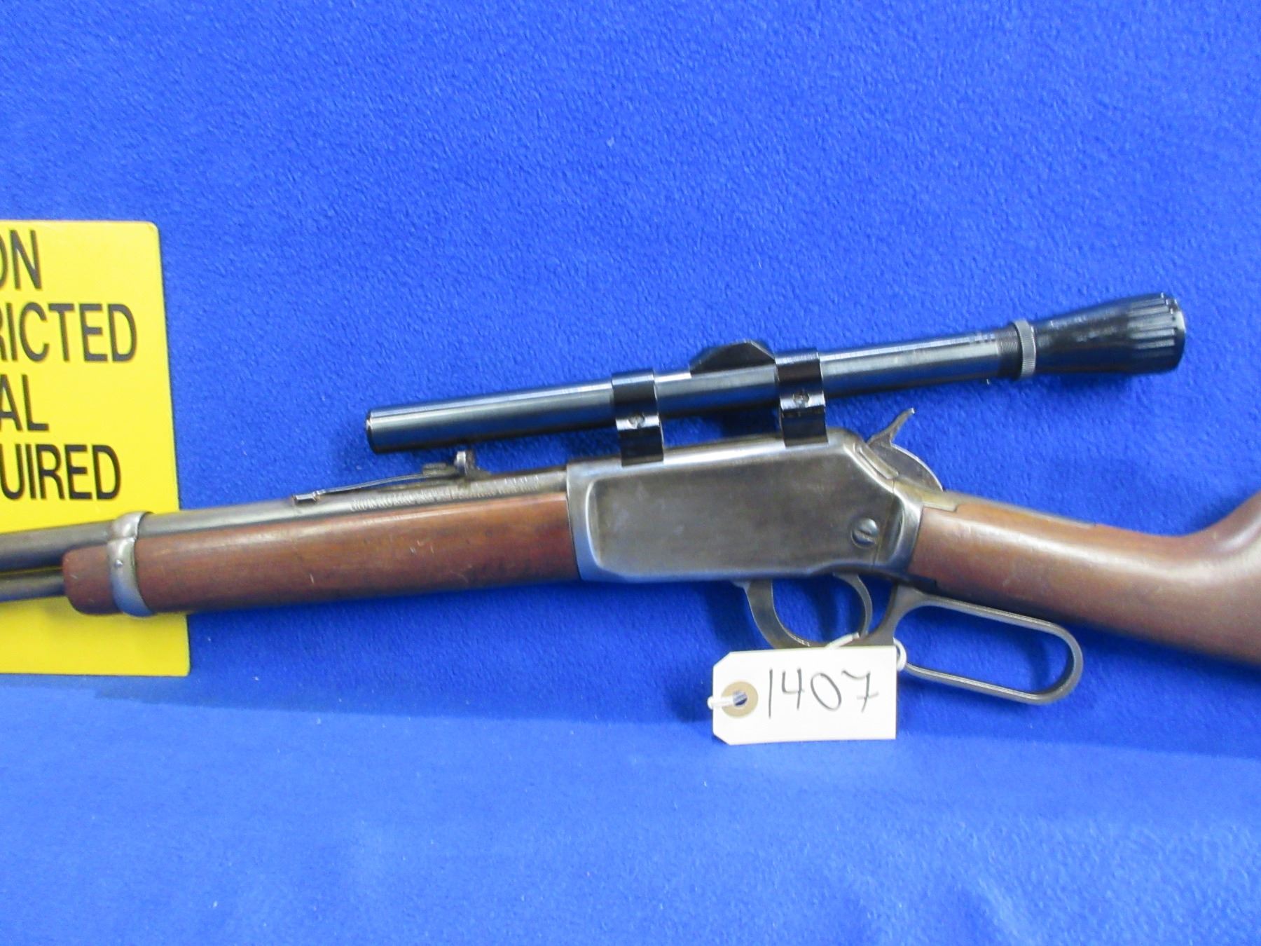 Non-Restricted - Winchester Model 9422 in 22 S/L/LR - This is a lever action rifle with tube magazine, action appears to be in good to very good working order, but barrel has a ring about 3" from the muzzle. Barrel is 20 1/4", rifling is good to very good, bluing is mostly gone, has both sights and vintage Weaver Marksman 4X scope - appears clear - standard reticle, stock and forearm are good with usage marks, butt plate good. Ser #F208135