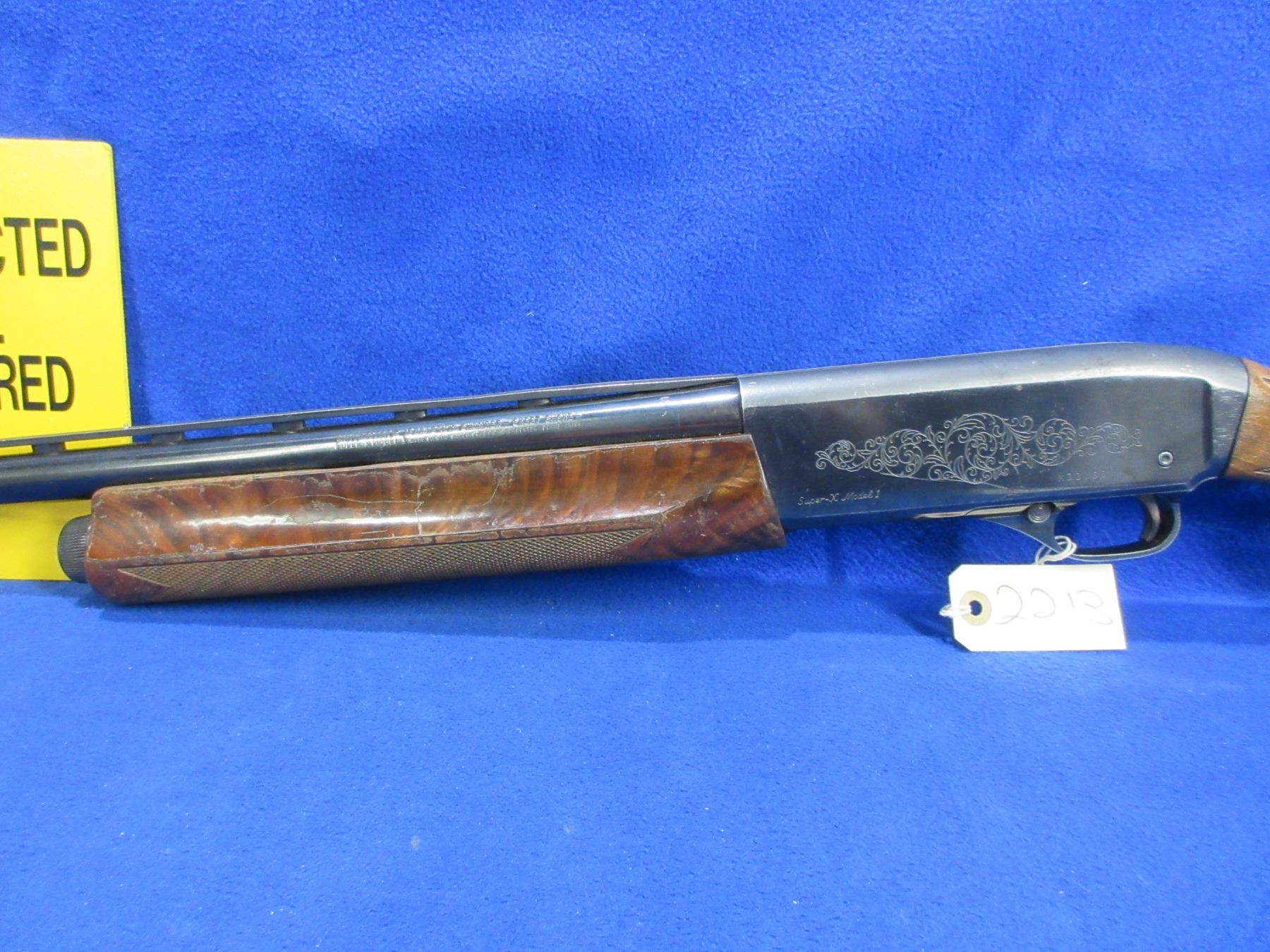 Non-Restricted - Winchester SuperX Model 1 in 12 Ga. 2 3/4" - This semi-auto shotgun appears to be in good to very good working order. Vent rib barrel is 26", bore is good to very good, bluing is good, has fiber optic front sight, stock is good with usage marks and finish flaking, forearm is good with usage marks and finish flaking, butt plate is chipped and cracked. Ser #M33366