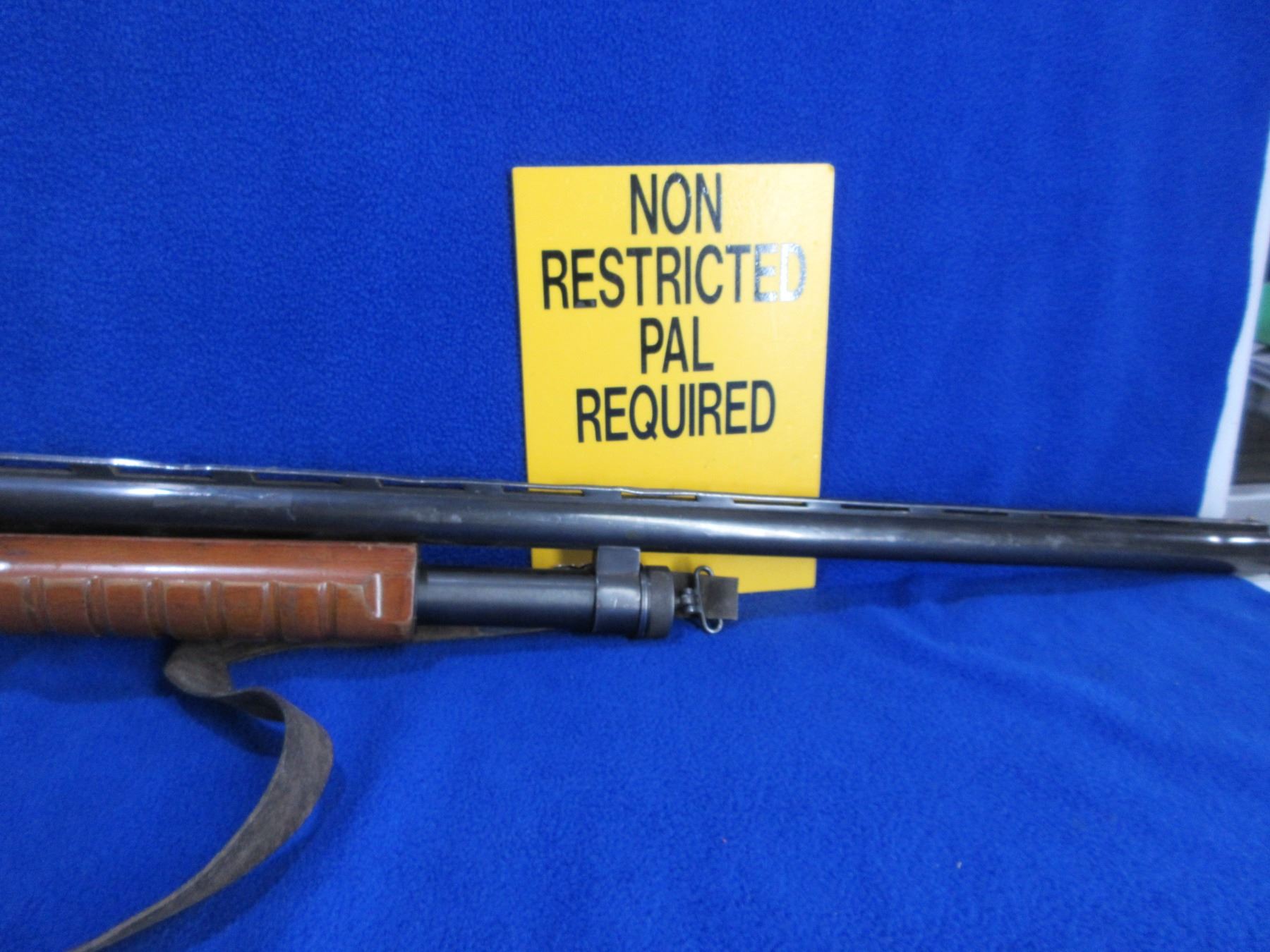 Non-Restricted - Zastava Model LP-12 in 12 Ga. 2 3/4" - This is a pump action shotgun with removable choke and tube magazine, action appears to be in working order. Vent rib barrel is 28", four ribs have been bent, bore is good, bluing has light scratches and wear spots on the barrel, black finish on action has many light scratches and wear spots, has bead front sight, stock is good with many usage marks, a large scratch at the toe and has tape residue - needs cleaned, forearm is good with many usage marks, butt plate good, comes with swivels and sling. Ser # OOO191