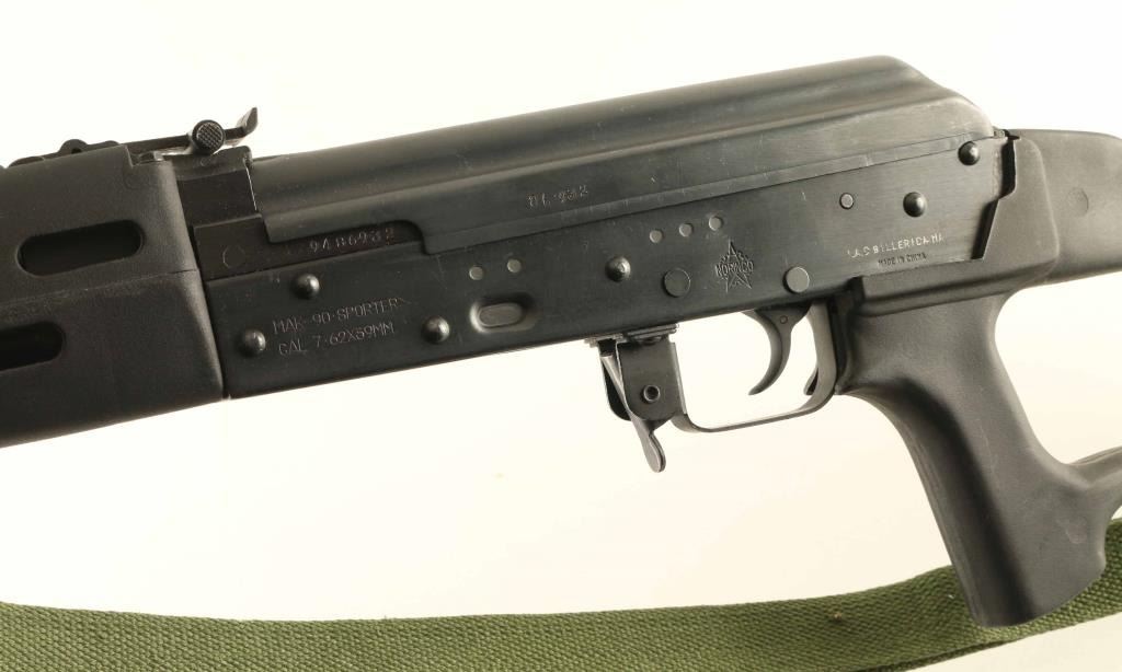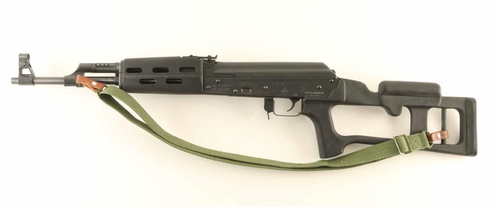 Chinese semiautomatic rifle imported by LAC, Billerica MA. Features 16.25" barrel, blued finish, military type adjustable sights, manual safety, aftermarket black polymer stock with thumbhole profile, aftermarket black polymer hand guards, sling slots. Bore is excellent. Retains 95% metal finish with scratches and rub marks. Stock is in excellent condition. Observed numbers match. Includes a 5 round steel magazine with "CHINA" stamped on the floorplate.