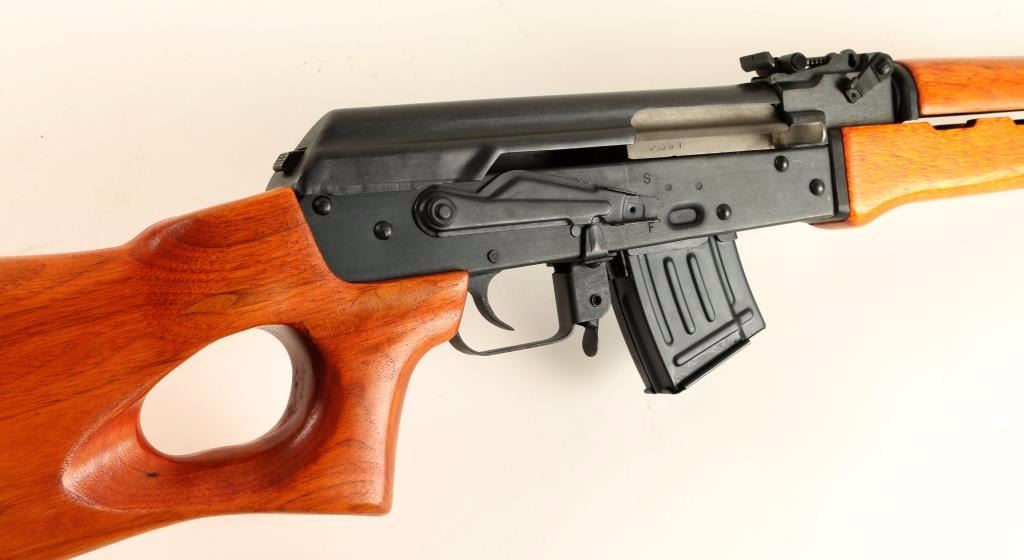 Chinese made copy of the AK-47 rifle chambered in 7.62x39mm. Features a blued finish, hooded ront sight, adjustable tangent rear sight, 10 round magazine, safety selector, smooth trigger, sling points, and wood forend, handguard & thumbhole pistol grip shoulder stock with rubber recoil pad. Includes styrofoam box with two extra magazines, sling, cleaning kit, cleaning rod, and documents. Finish shows no signs or use or wear. Action is crisp, bore is perfect, and wood stocks are fine. Likely unfired since the factory. Condition is like new in box. ***Modern Firearm***