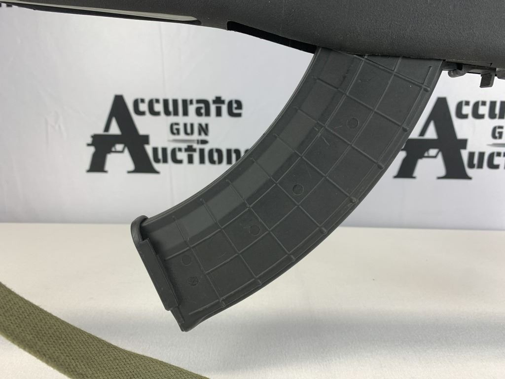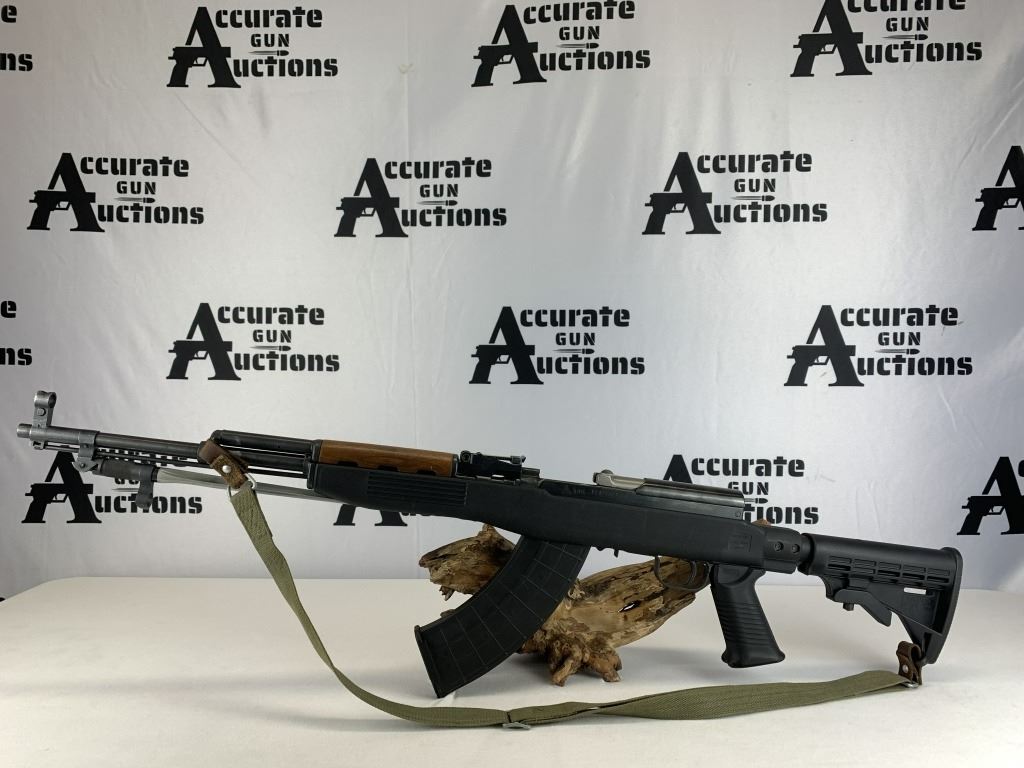 An overall length of 39.5" this gun is the full package. Lets start front to back; Folding bayonet attached, hooded post front sight, green nylon sling, adjustable 100 meter rear sight, 1 Pro-Mag, safety lever on the right side of the trigger and an adjustable stock. Please see the photos.