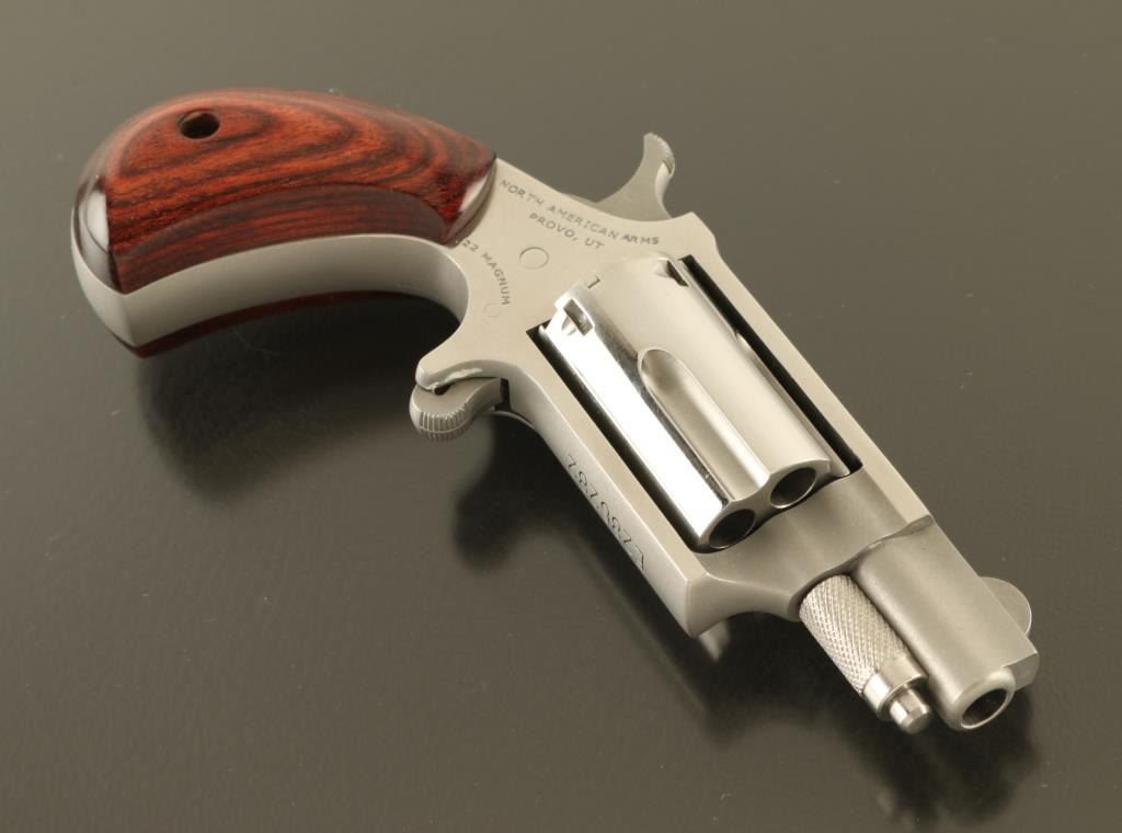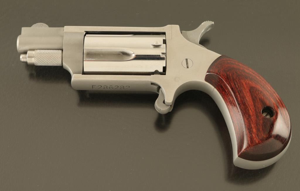 SN: E286282 Single action revolver features stainless steel construction, smooth wood bird's head grips, fixed sights, spur trigger (no trigger guard), 5 shot cylinder is removed to load/unload. Bore is excellent. Overall condition is excellent. Includes hard plastic case with cardboard sleeve, manual. Condition is NRA Excellent *** Modern Firearm ***