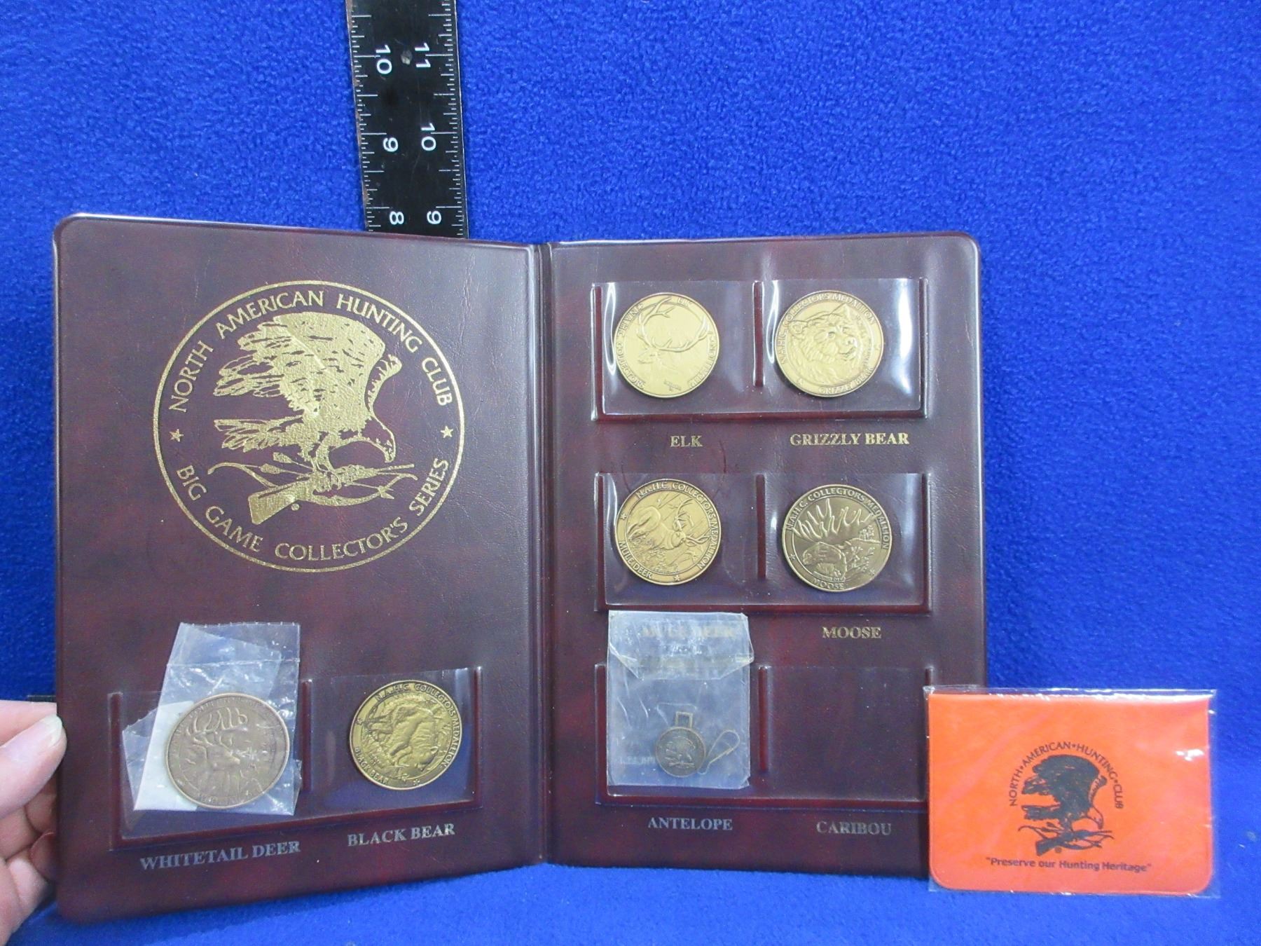 North American Hunting Club Big Game Collector Series Coin Set - 6 Coins (2 Missing) and a NAHC Keychain Charm