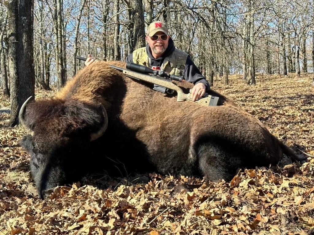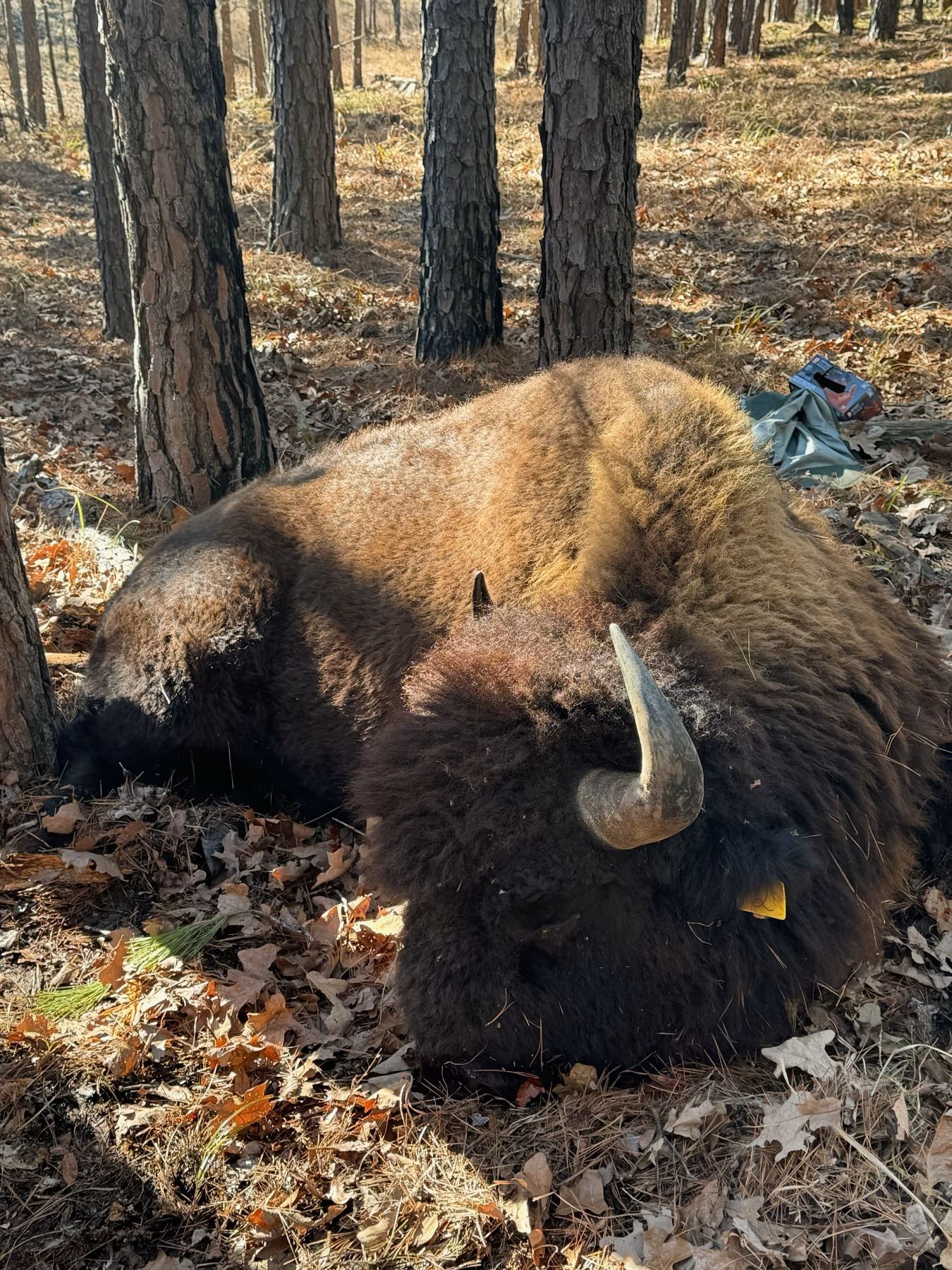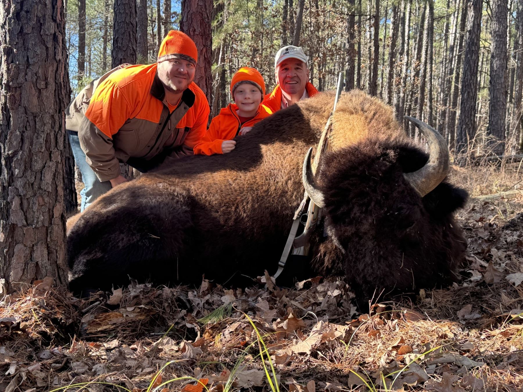 Hunting package includes trophy fee for one Bison Bull, meals, accommodations in their lodge located on the property, and field dressing.
