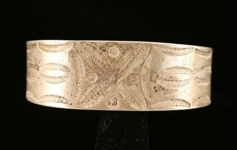 Sterling cuff 1/2" wide with etched floral motif. Inside measures 2 1/4" unsigned.