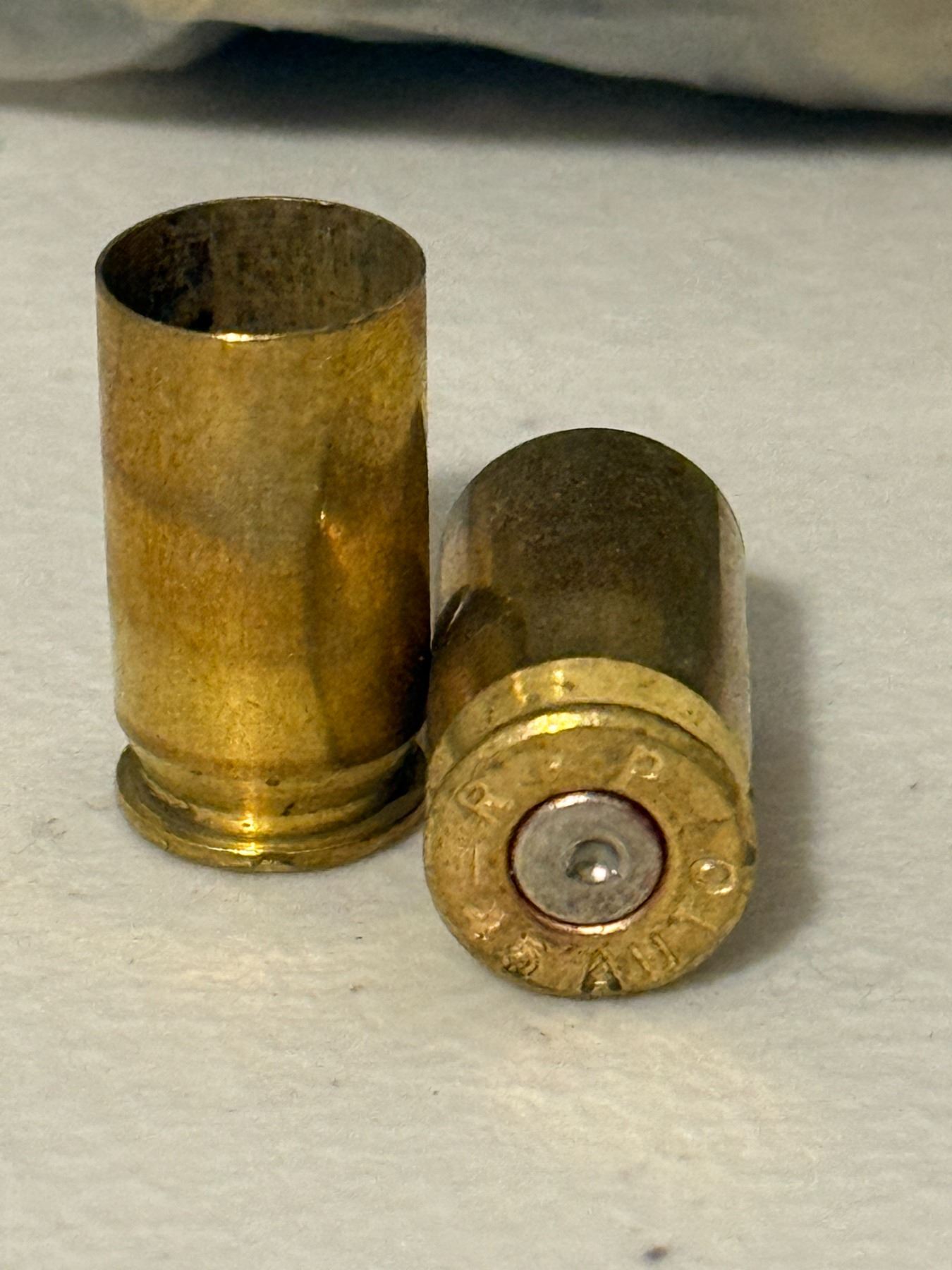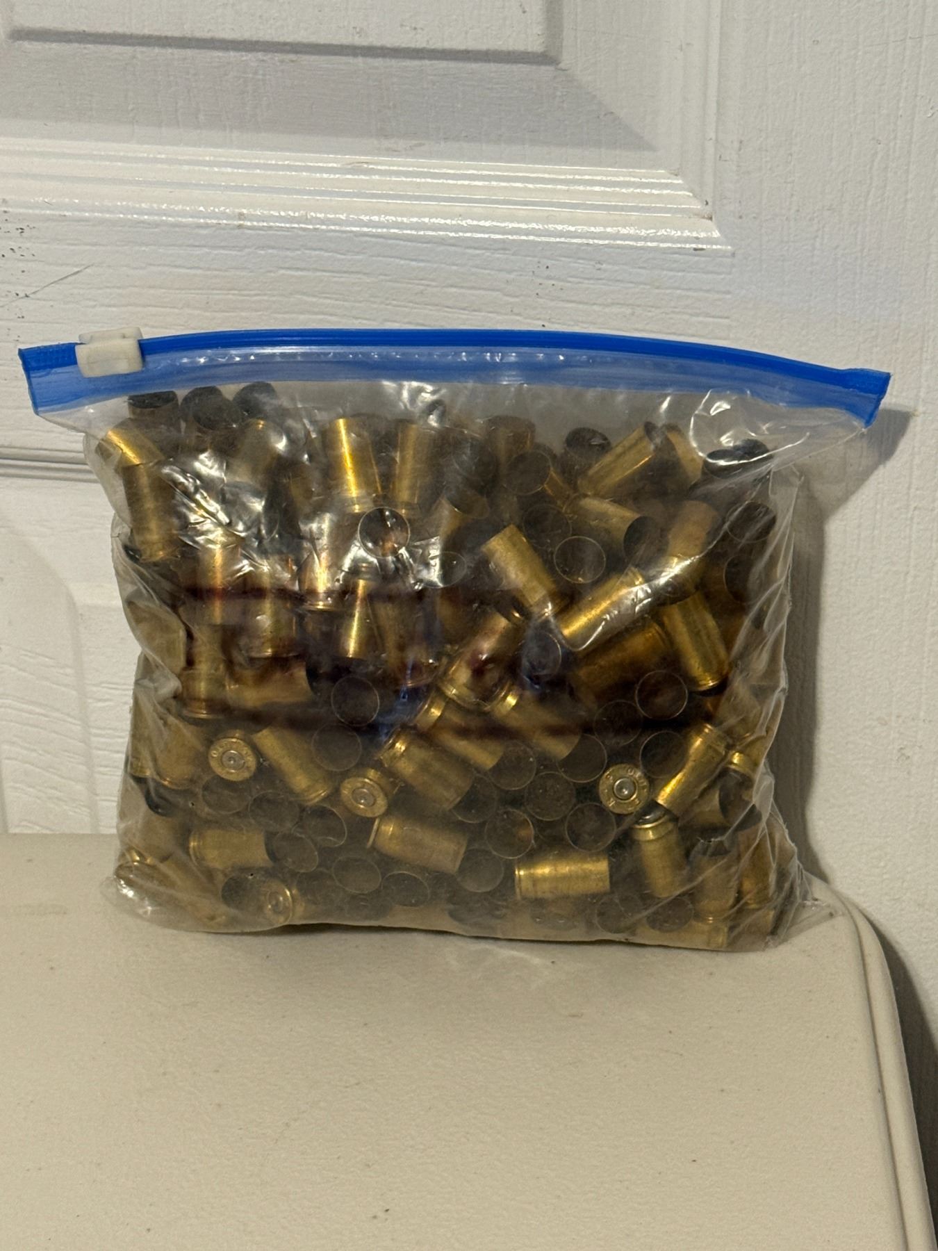 Mixed once-fired 45 auto brass cartridge cases, sold as one bulk lot. Total weight 3.8 lbs. Ideal for reloading or brass recovery. Condition as shown. Sold as-is.