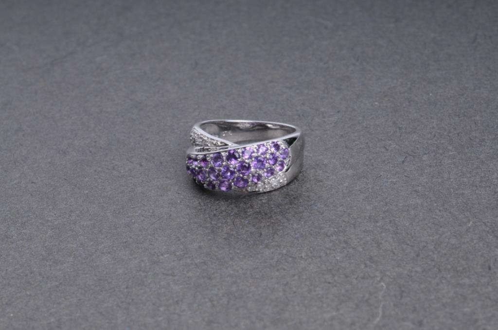 One contemporary design ring in 18k white gold set with amethyst and diamonds Est:$500-600