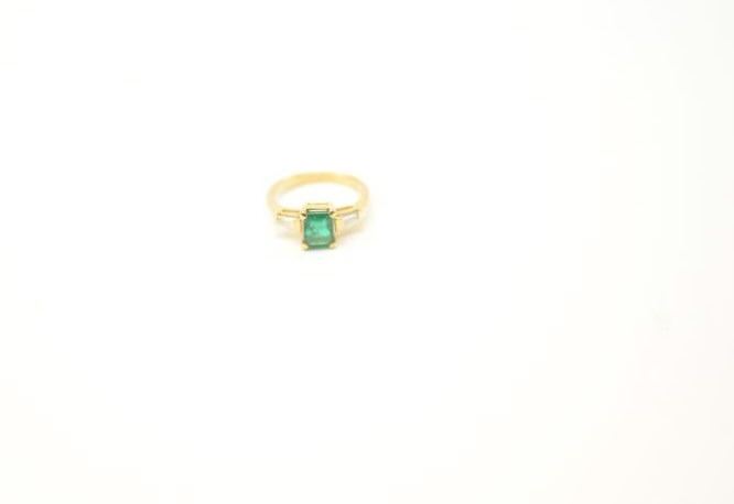 One fine emerald cut emerald ring in 14yellow gold accented by 2 baguettes Est:$700-1400