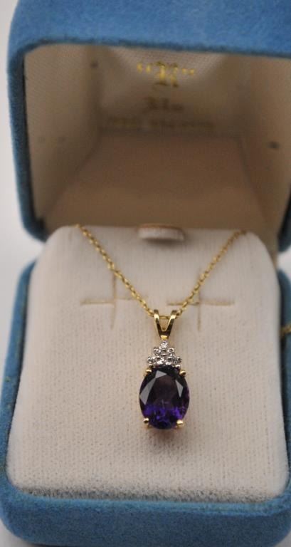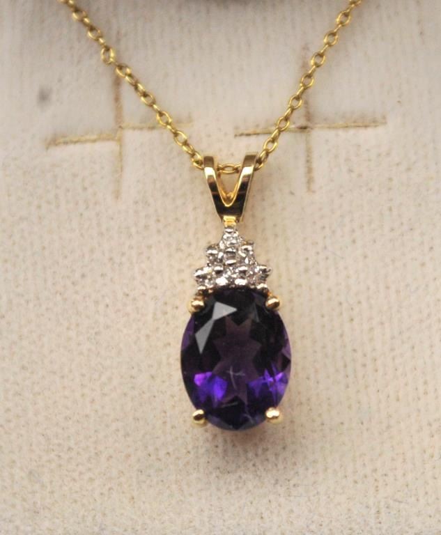 One fine oval Mozambique amethyst set in 14k yellow gold pendant with diamonds Est:$150-300