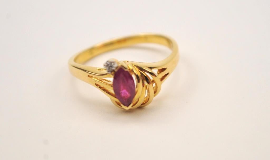 One marquee ruby and diamond ring in 18 k yellow gold Est:$300-600