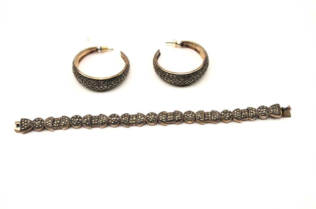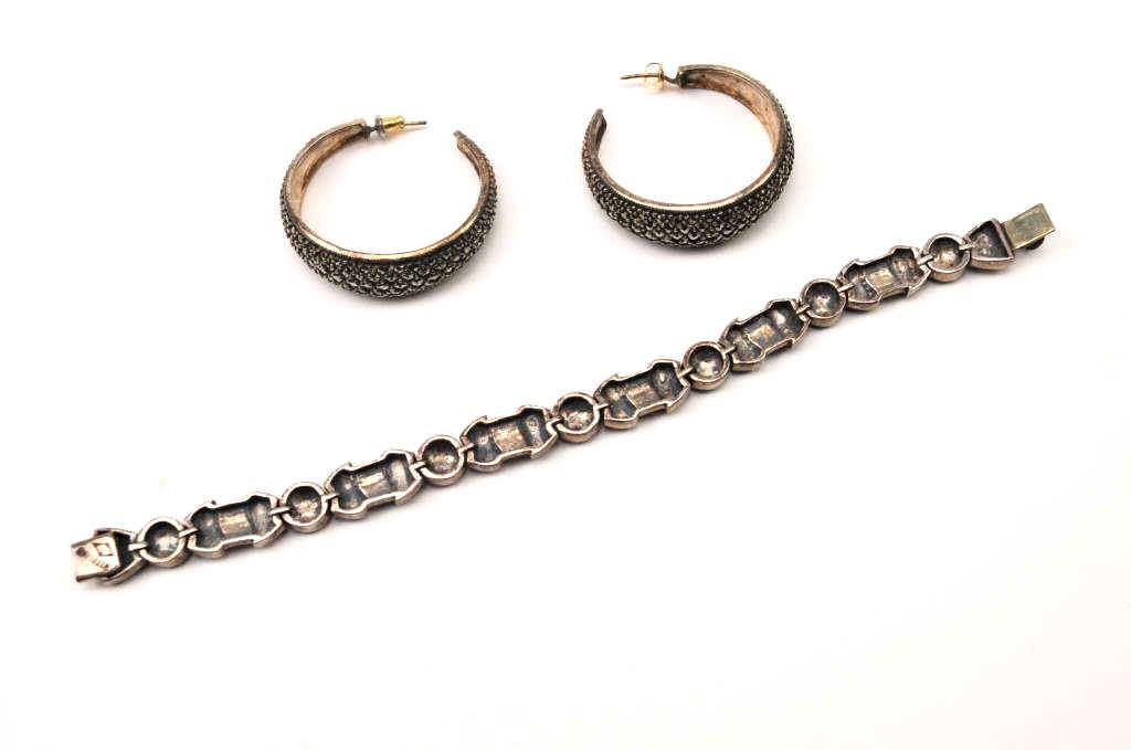 One marquisette bracelet and earrings set made in sterling silver Est:$250-500
