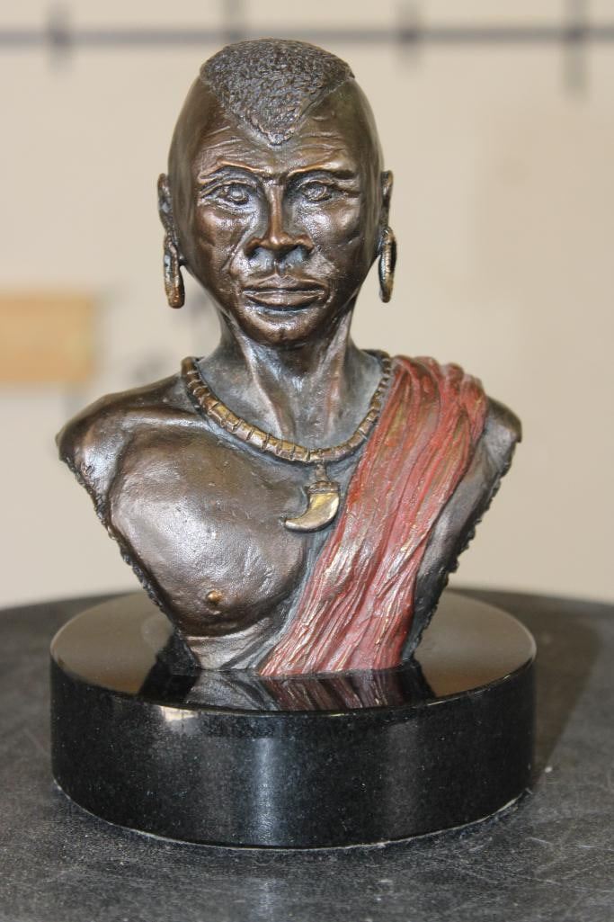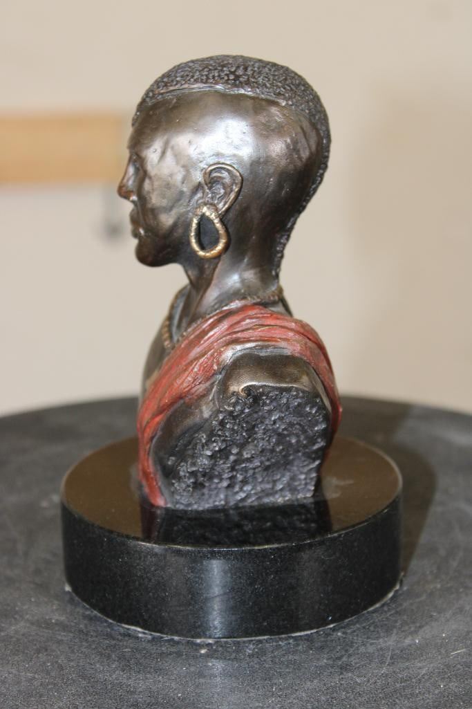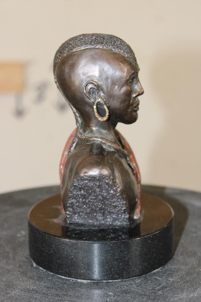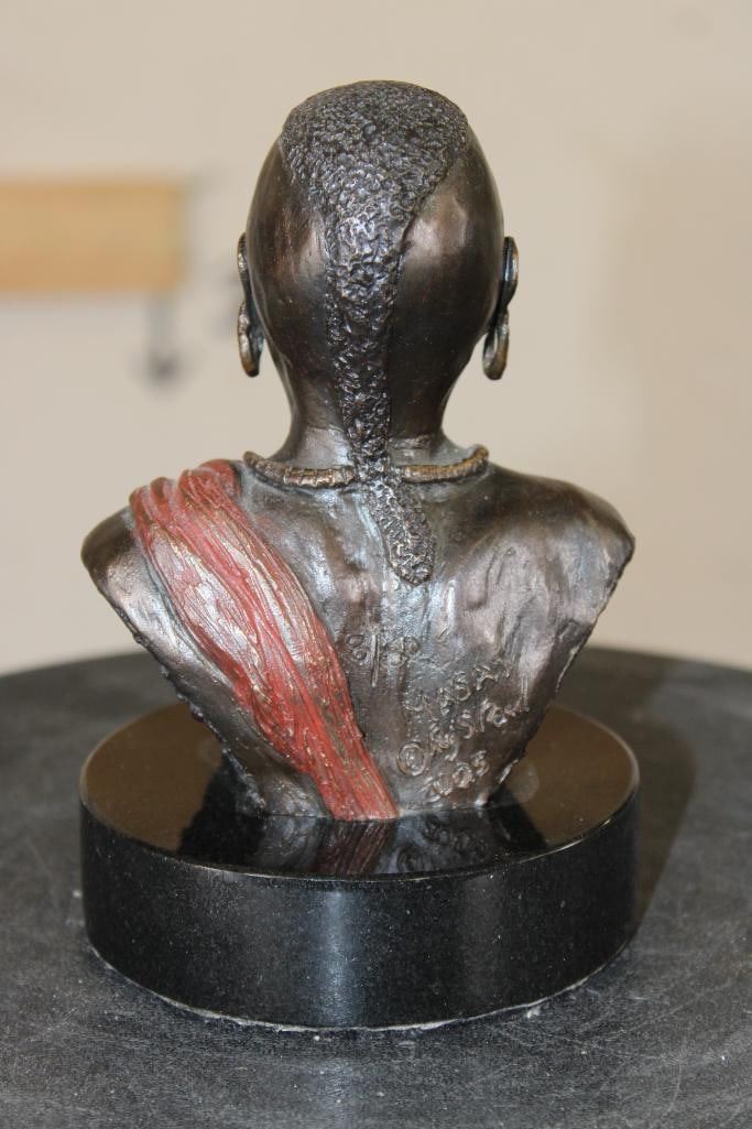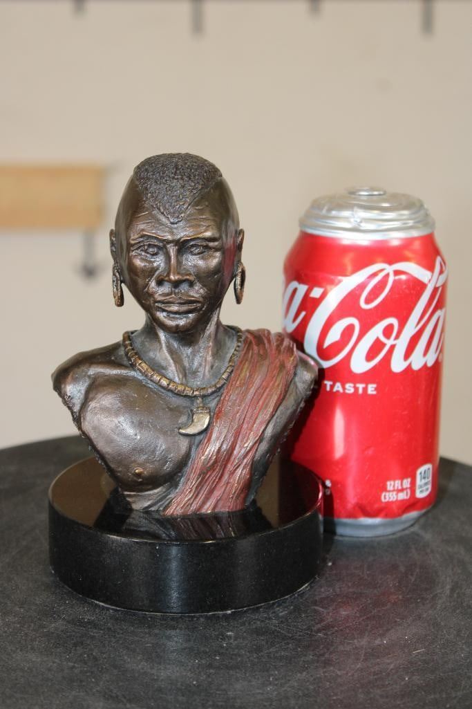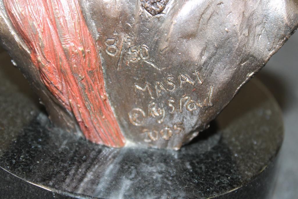 Original Bronze African Masai Bust signed "Raj S. Paul 2005" and Numbered #8/50. It has a Black Granite Base and measures 6 3/8" Tall x 4 1/8" Wide. The Total Weight is 3 lbs 11 oz. The Next Lot is the matching Female Bronze Bust Statue. COLLECTIBLE SCULPTURES AND STATUES