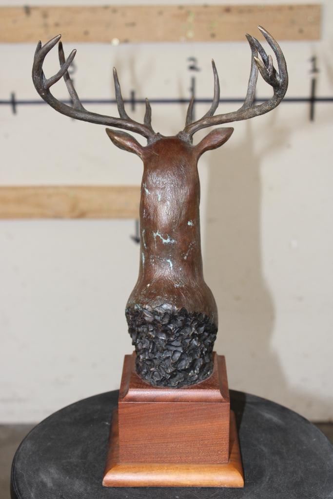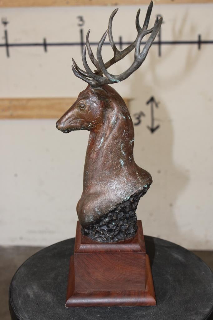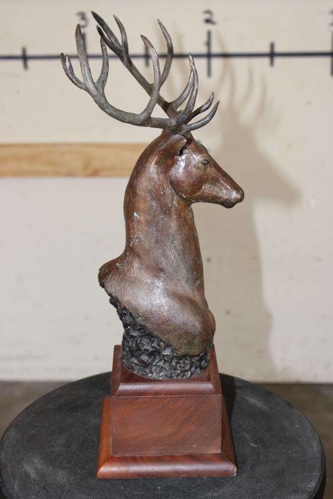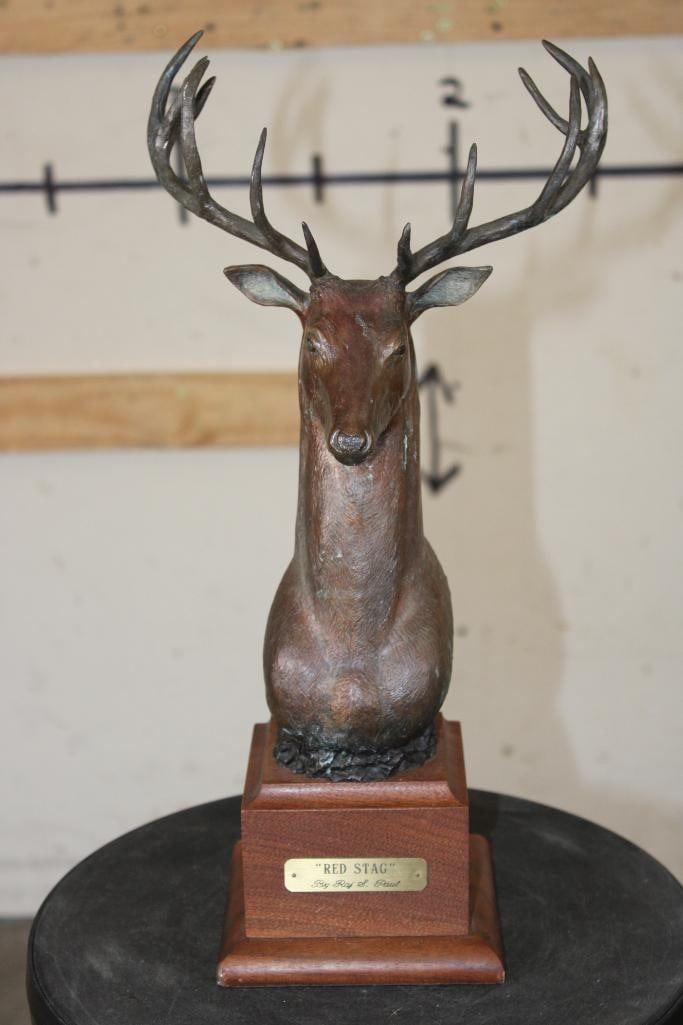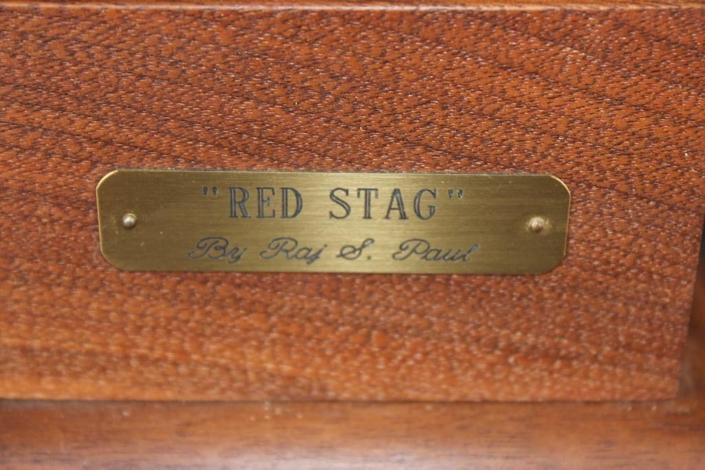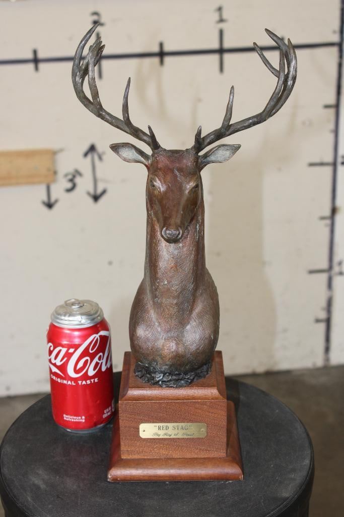 Original Cast Bronze "RED STAG" on a Wooden Base. It has been signed "Raj S. Paul 2003" and numbered #2/26. It measures 16.25" Tall x 8" Wide (Antler Spread) x 6.5" Depth (from the wall). The Total Weight is 6 lbs 8 oz. COLLECTIBLE WILDLIFE BRONZE SCULPTURES