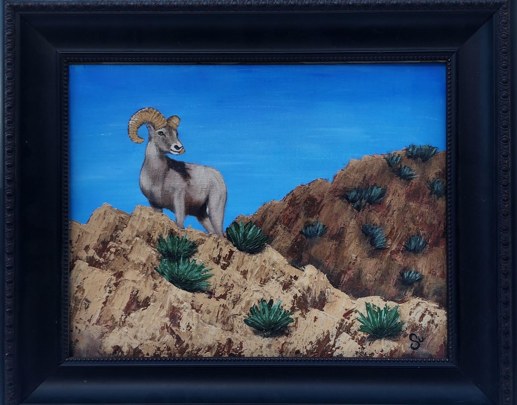 Original Desert Bighorn Framed 16" X 18" by Su 1/1