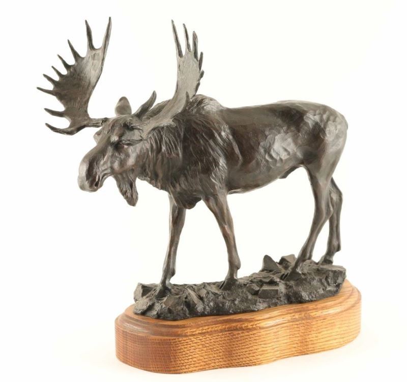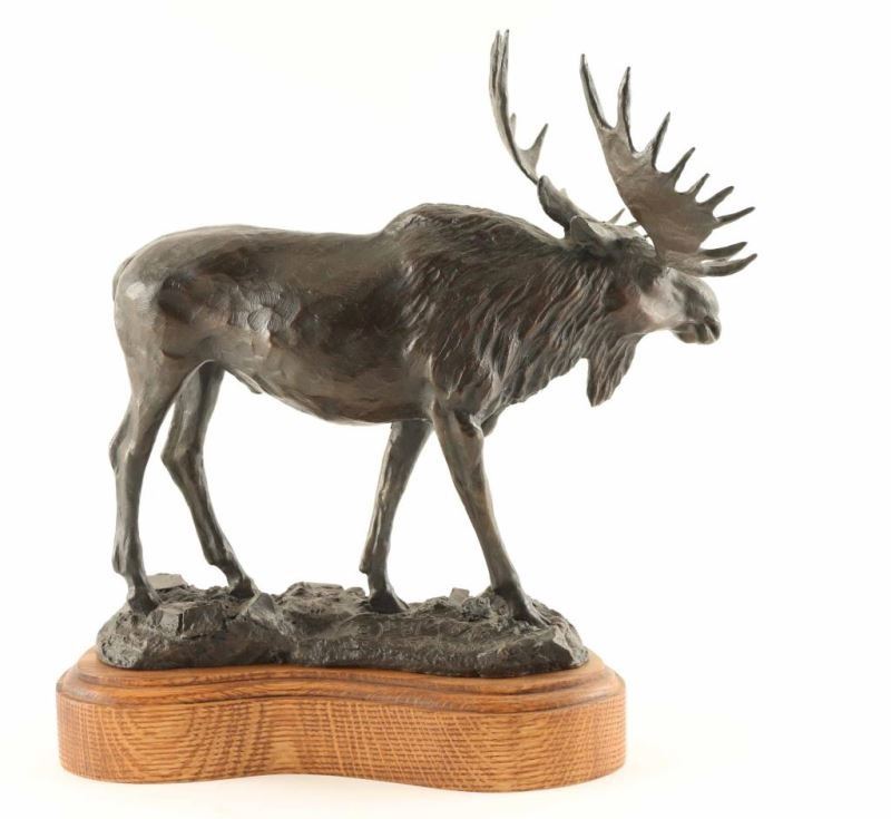 of Bull Moose by Morrison, #6/40, measures 13"x13"x7". BIO- Clarence or C.R. Morrison is a world-renowned sculptor who was born at his family's homestead in the Sweet Grass Hills of Montana. Morrison's work has been commissioned by galleries and collectors throughout the United States. Clarence is famous for his sculptures of horses, wildlife, and ranch scenes of the western United States.