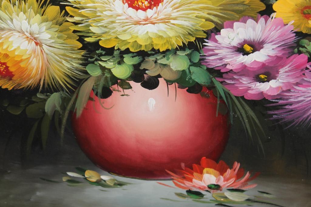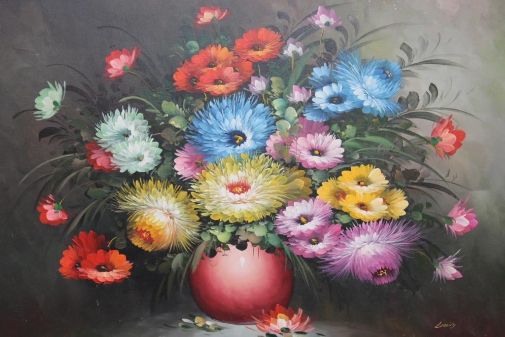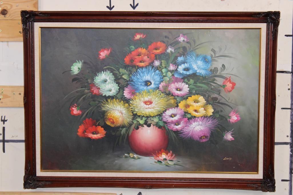 Original Floral Still Life Oil Painting by artist "Louis" in a Wooden Frame. It measures 41.5" Long x 29.5" Wide. COLLECTIBLE ART PAINTINGS