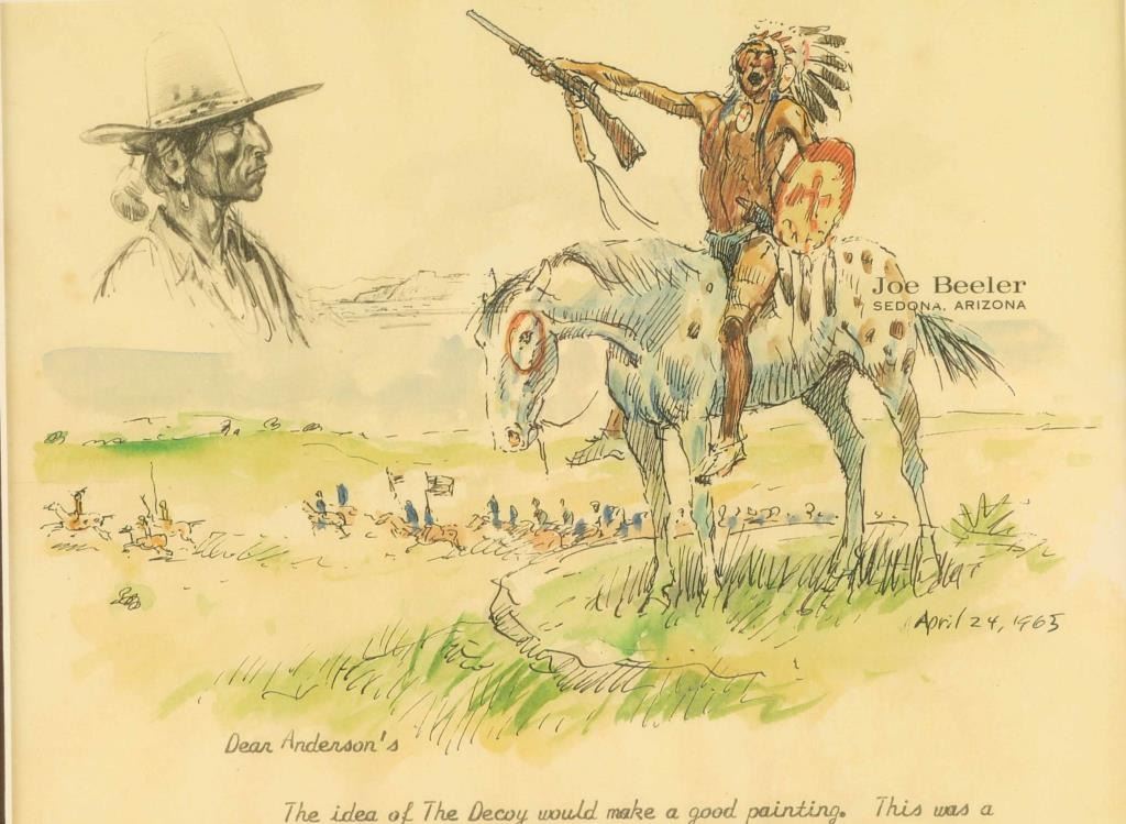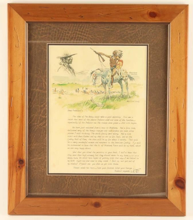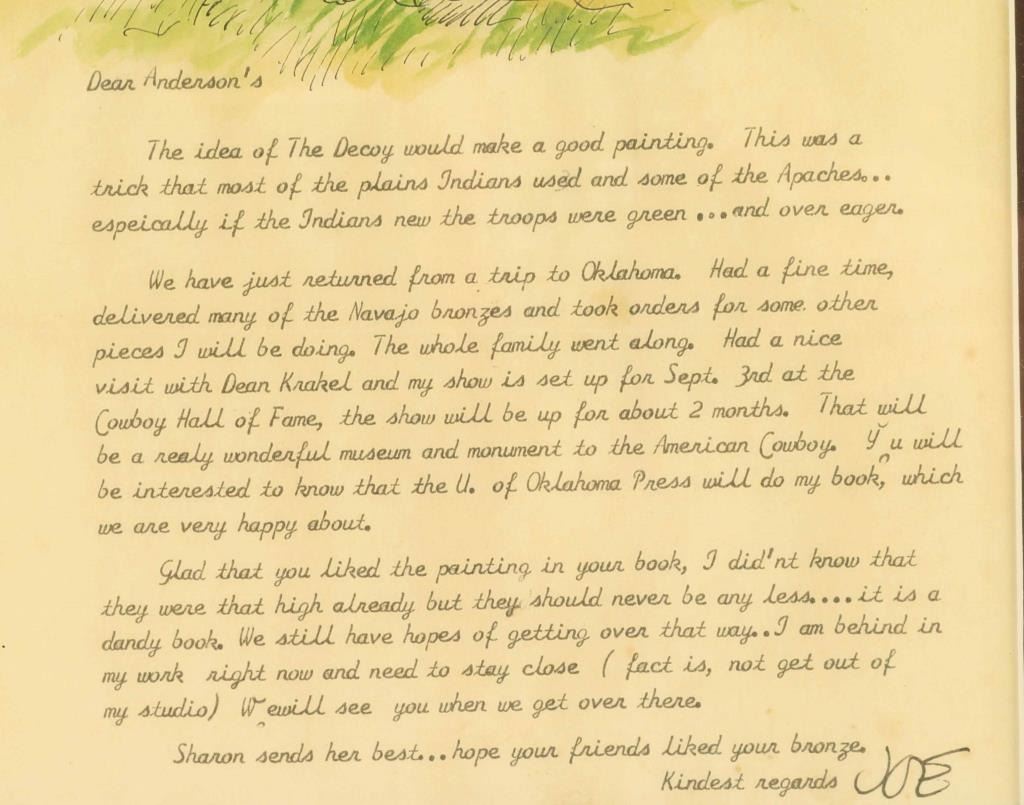 Dated April 24, 1965. Letter is to the Anderson's and pertains to the transportation of bronzes and some that were commissioned. Includes a lithograph of a war ready Indian riding a horse.