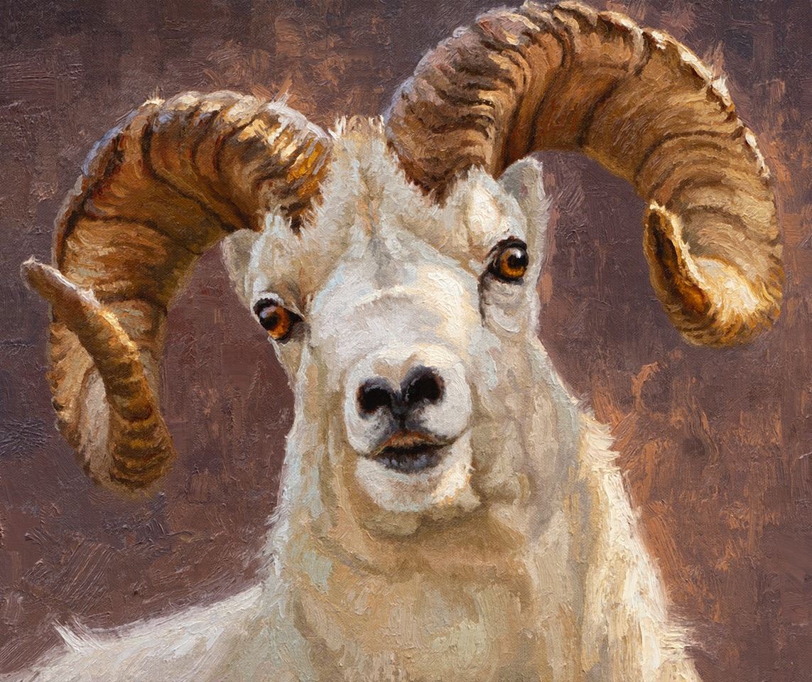 Original Oil Painting: "Alaskan Dall Portrait" by Chip Brock - “Alaskan Dall Portrait” is a brand new painting by renowned Alaskan artist Chip Brock. This 18” x 18” painting is an original oil painting on linen and is custom framed. Chip is an avid hunter and outdoorsman who loves to recreate the beauty of “the experience”. His work has raised money for multiple wildlife organizations and national/state parks. In addition to his studio, Chip’s original work can be found in galleries in: Jackson Hole, WY; Whitefish, MT; Bird Creek and Anchorage, AK. For additional information: Contact Chip at 907-631-9149. Or email: chip@chipbrock.com . Website: www.chipbrock.com