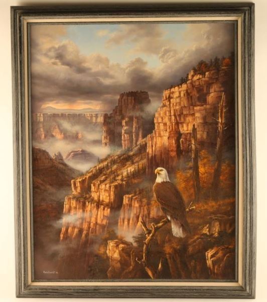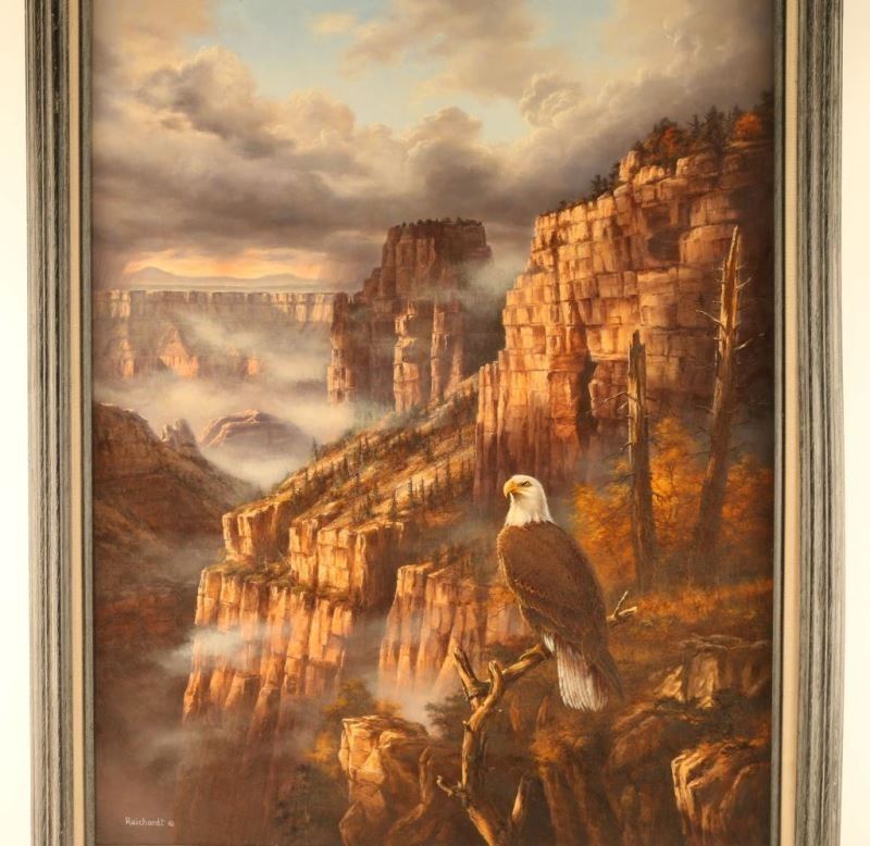 By R.W Reichardt framed in barn wood, entitled "Spirit of the Canyon" Measuring 24"x30".