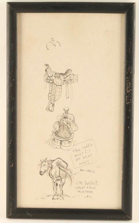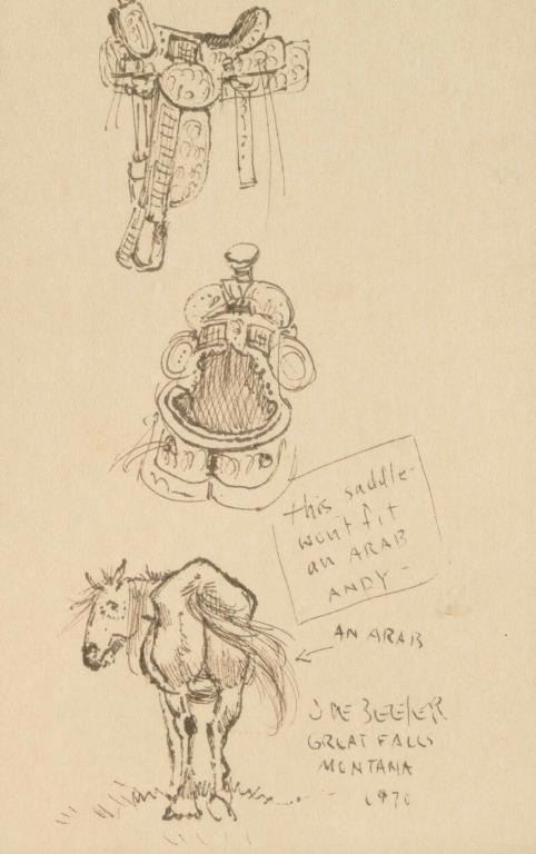 by Joe Beeler rough sketch of horse and saddle signed 1970 Joe Beeler.
