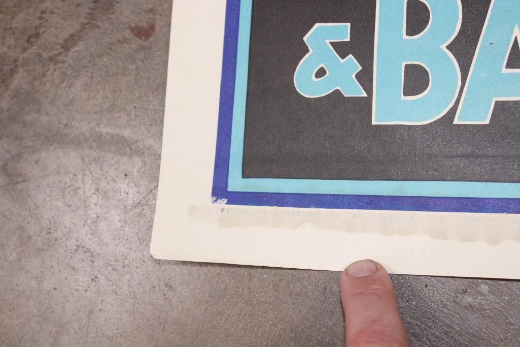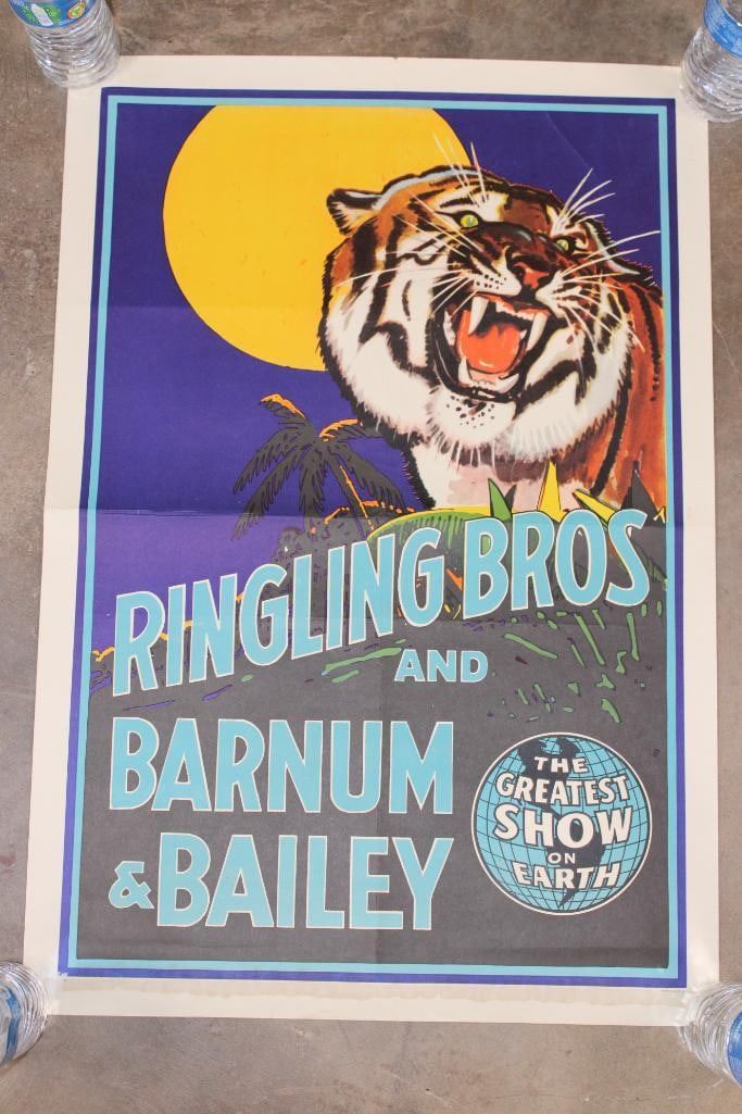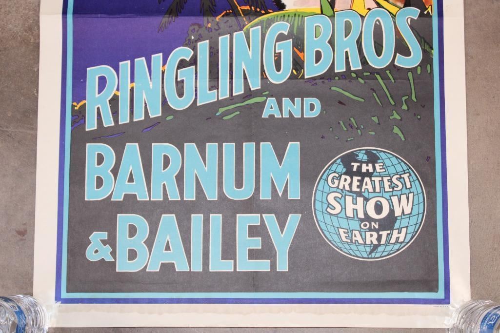 Original 1950's "Ringling Bros. Barnum and Baily" Circus Advertisement. This gorgeous lithograph poster design was created in 1941 but was used in the 1950's. It measures 28" Tall x 20.5" Wide. It is in Very Good Condition for its age. COLLECTIBLE ADVERTISEMENT AND LITHOGRAPHY ART