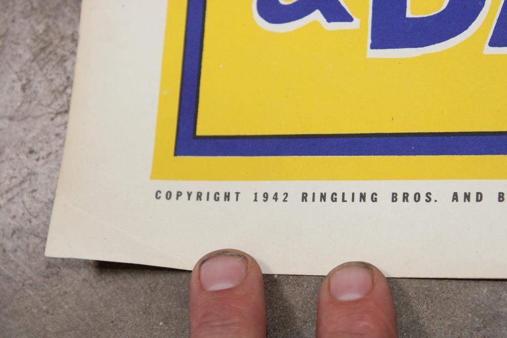 Original "Ringling Brothers Barnum and Bailey Circus" Advertisement Lithograph from 1942. It has bold colors and an incredible Hippo image. The Total measurements are 28" Tall x 19.25" Wide. It is in Very Good Condition for its age. No Frame. This early 1940s Giant Hippo artwork is particularly desired by collectors and interior designers alike for its beauty and detail. COLLECTIBLE ADVERTISEMENTS AND POSTERS