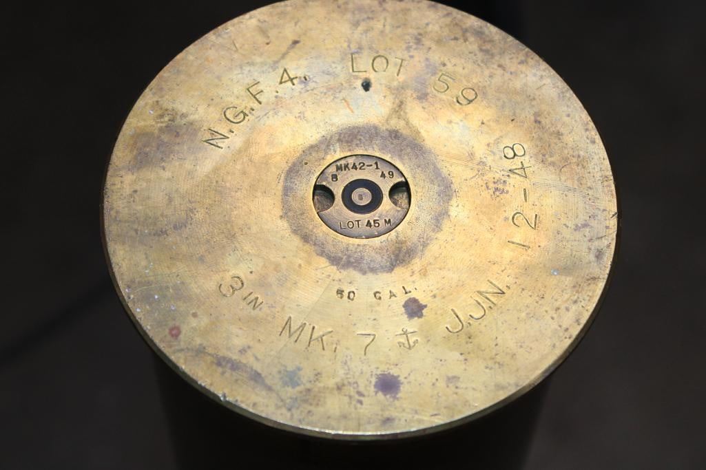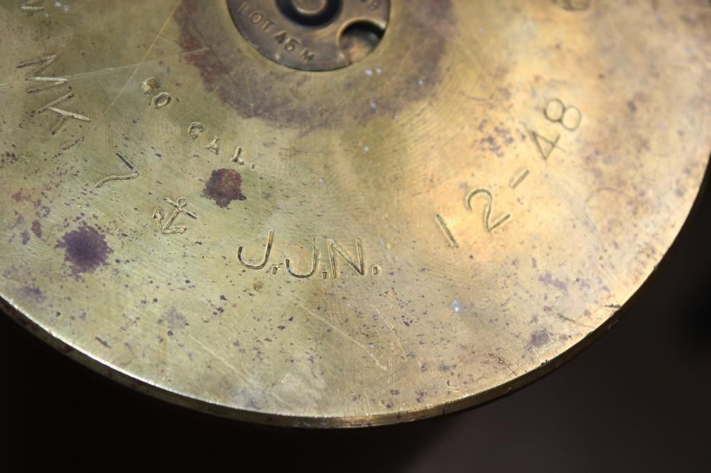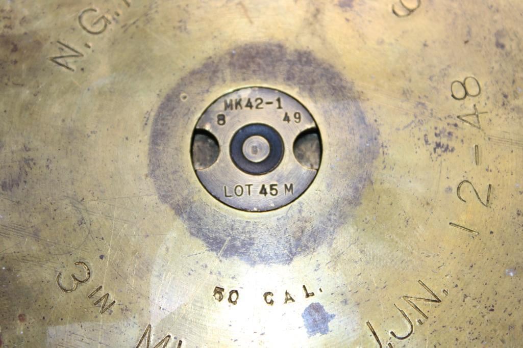 U.S. Navy 3-inch MK-7 Brass Casing dated 12-1948. It measures 23" Tall x 4.25" Wide with a Total Weight of 6 lbs 14 oz and has a nice patina. It These were used during World War II and the Korean War. COLLECTIBLE WW2 AMMUNITION AND MEMORABILIA