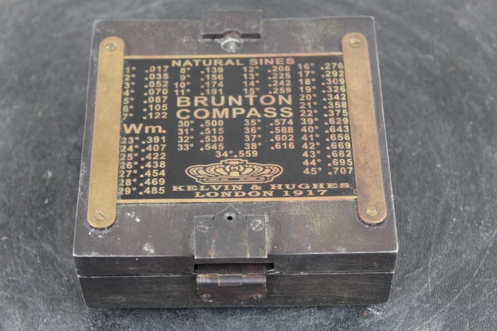 Original WW1 Era Kelvin and Hughes London 1917 Brunton Compass made of BRASS. It measures 4" Long x 4" Wide x 1.5" Depth. The Compass is in nice Working Condition. COLLECTIBLE WW1 MILITARIA