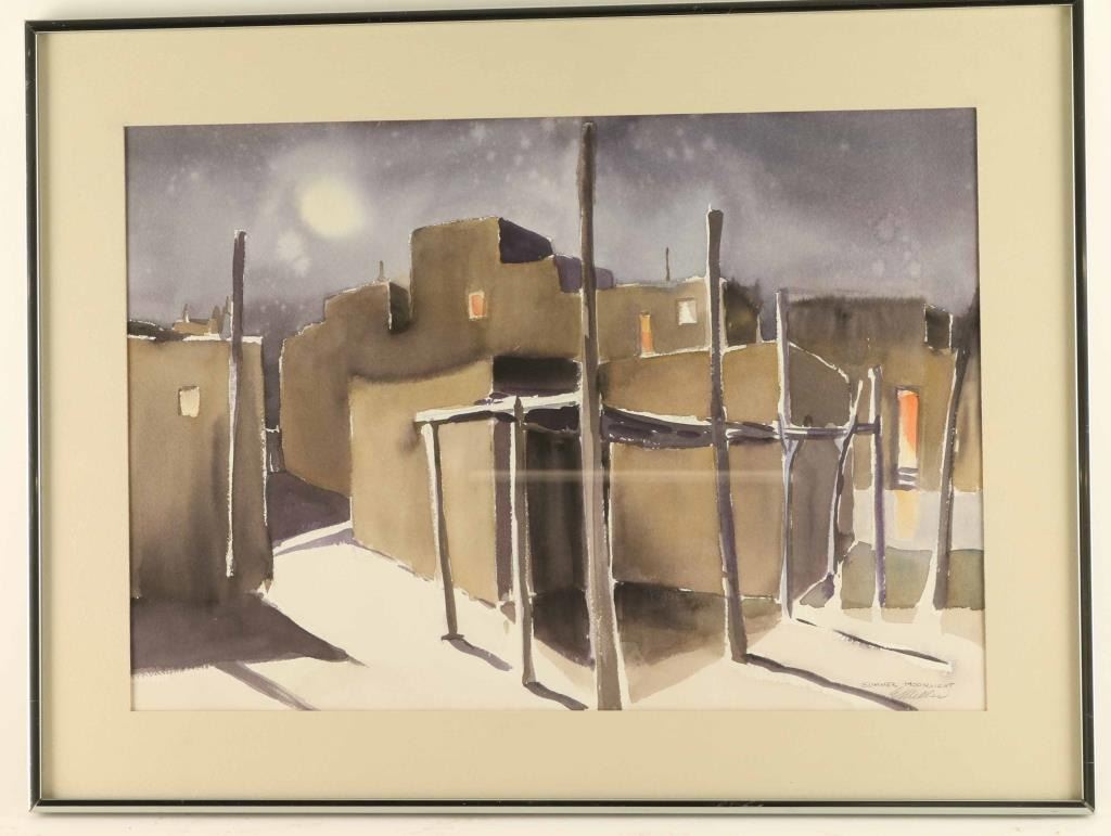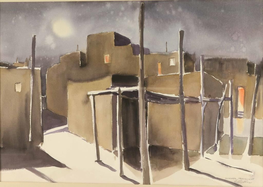 by Ester Miller entitled "Summer Moonlight" depicts an Taos type piece. Image size is 19" x 14".