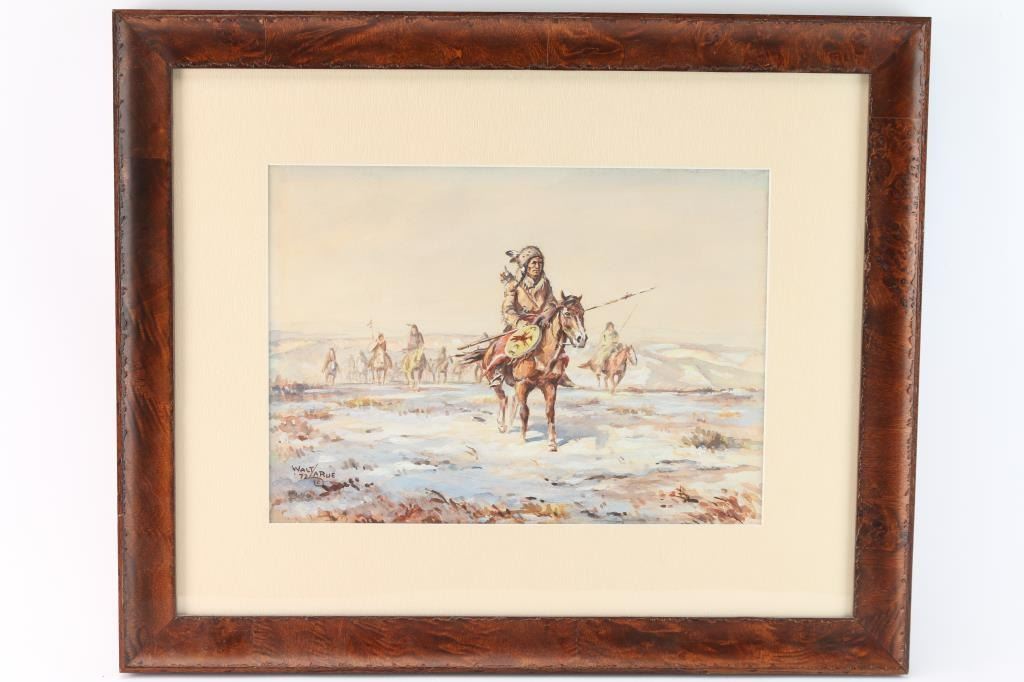 By Walt LaRue, entitled "On the Move". Measures 14" x 10", matted and framed measures 22 1/2" x 18 1/2".