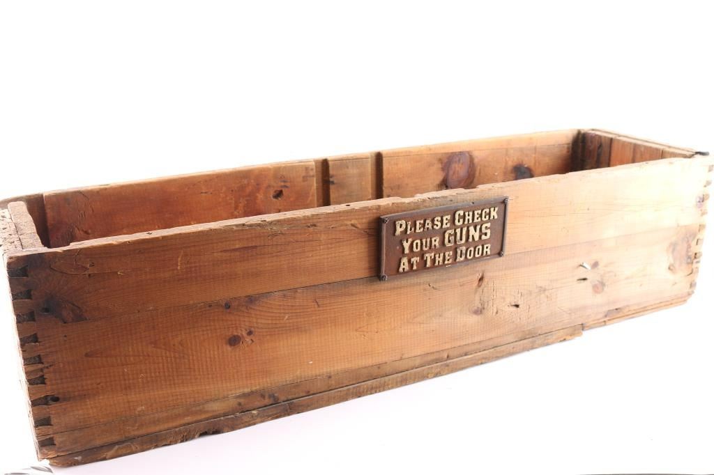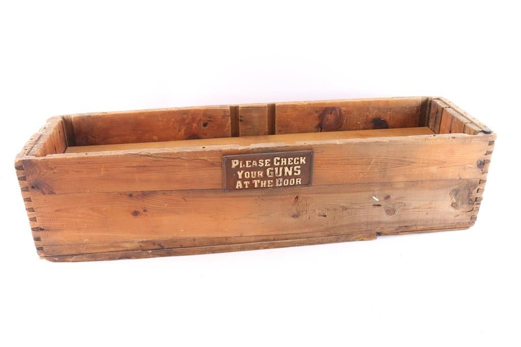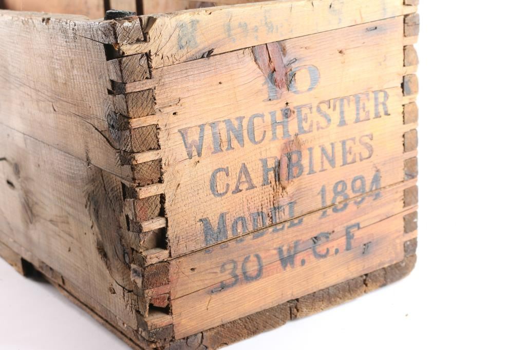 Carbine (10 gun) crate with end marking, no top. False bottom with glass top for display case. Crate is fair. Glass shows some scratches. John Kopec estate collection.