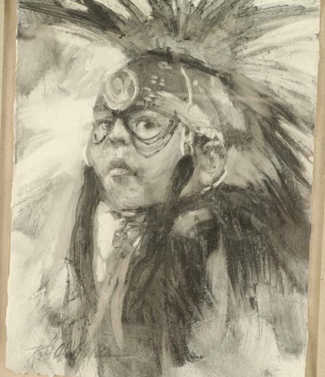 by Robert Alan Niclon depicting indian Kachina dancer. Hand signed. 14"x11"
