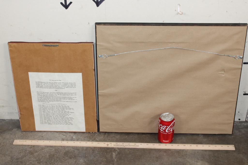 Vintage 20th Century Lithograph Print "Our Heroes and Our Flags" from the Civil War. It is in a nice glass and wood frame that measures 16" Tall x 13" Wide. It comes with a copy of "Crow Indians with Tipis and Horses" in a 23" Wide x 19" Tall glass and wood frame. This specific image is a copy print made by the Smithsonian Institution in 1968 from an original photograph. The photo was lent by Mrs. Hulda Miller Fields of Missoula, Montana. (ONE$) COLLECTIBLE CIVIL WAR MEMORABILIA