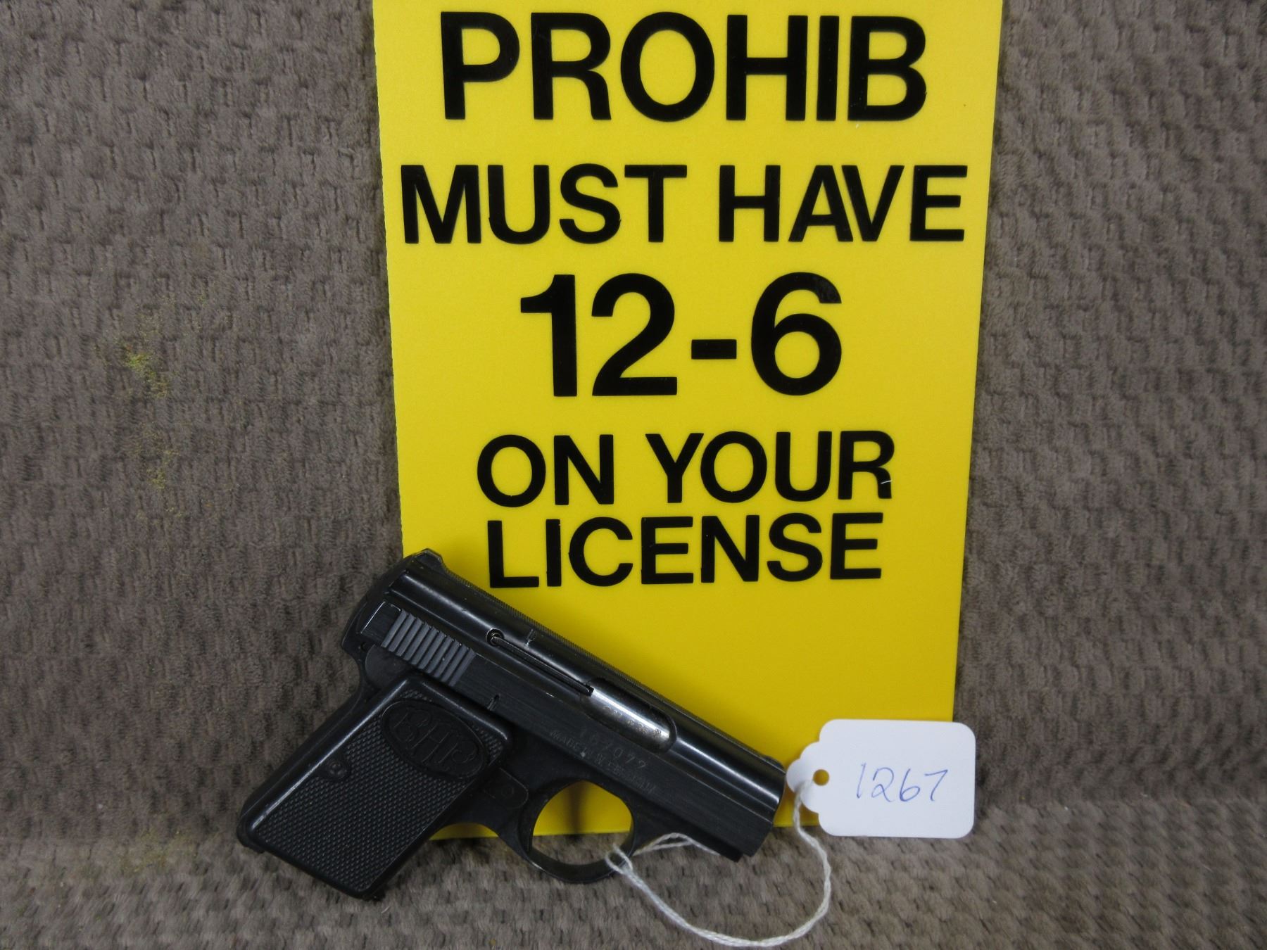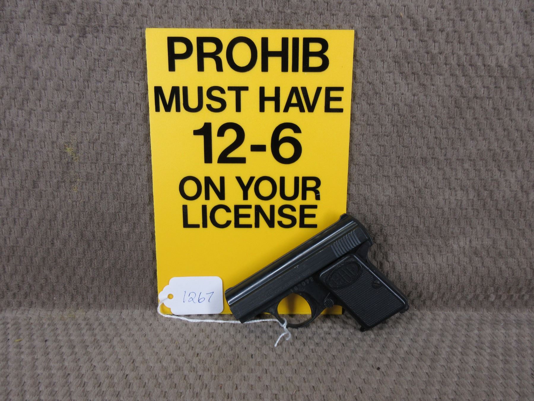 PAL must have 12-6 Handgun on it to Purchase this Prohib Firearm CHECK BEFORE BIDDING - Herbert Schmidt Baby Auto Pistol in 25 ACP/6.35mm - This magazine feed semi-auto pistol appears to be in very good to excellent working order, may have never been fired. Barrel is 54MM, rifling is excellent, bluing is very good with some small handling marks, has fixed sights, grips are excellent. Ser # 167072