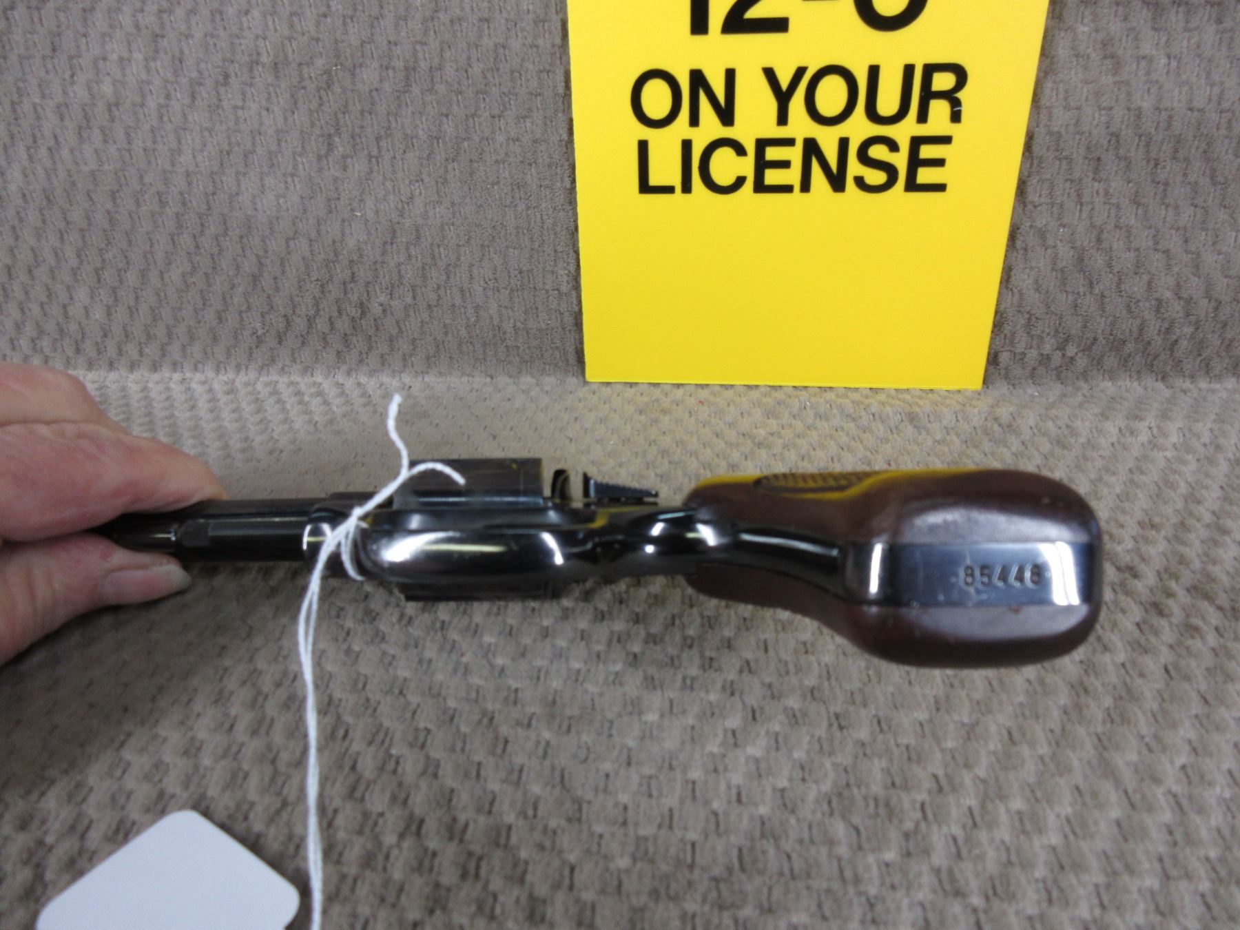 PAL must have 12-6 Handgun on it to Purchase this Prohib Firearm CHECK BEFORE BIDDING - Smith & Wesson Model 33 in 38 S&W - This 5 shot revolver appears to be in very good working order. Barrel is 102MM, rifling is very good, bluing is good to very good but has holster wear, has fixed sights, grips are good to very good with some handling wear, gun does not appear to have been fired, Ser # 85448