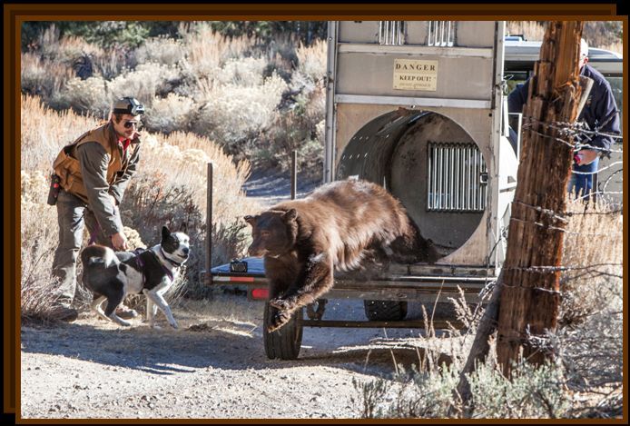Department of Wildlife (NDOW) Bear Biologist Carl Lackey with either: 1) Spending a couple