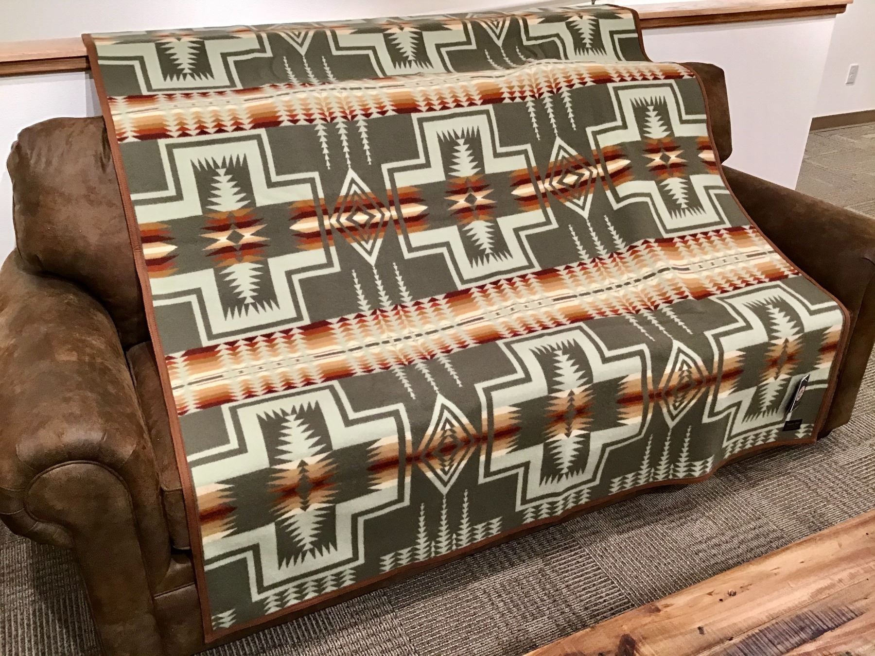 Throw, Twin or wrap/robe size is napped and felt bound 64"X 80"