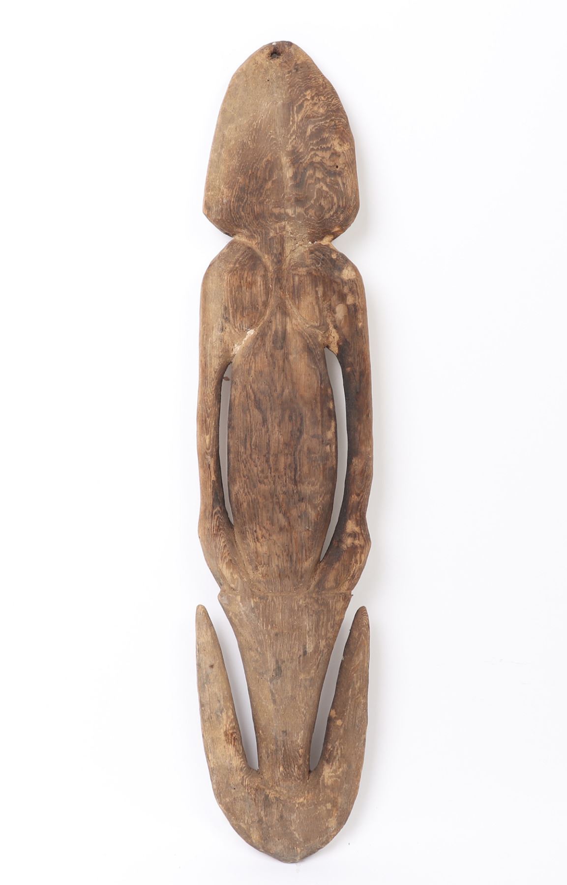In Papua New Guinean societies, these hooks hold deep spiritual and ceremonial importance. They are often used in rituals related to ancestor worship, fertility, initiation rites, and other traditional ceremonies. The hooks may be seen as a connection to ancestral spirits or as objects through which spiritual power flows. Size 24 3/4" H x 5 1/2" W. Condition: worn from time and use. Provenance: Collected prior to 2008, ex-Lacy Gallery (Vanna & Lee Lacy collection), Los Angeles CA. Lacy Gallery was founded upon six decades of collecting ethnographic and fine art. Lee Lacy was a distinguished Hollywood producer of iconic TV series and commercials.