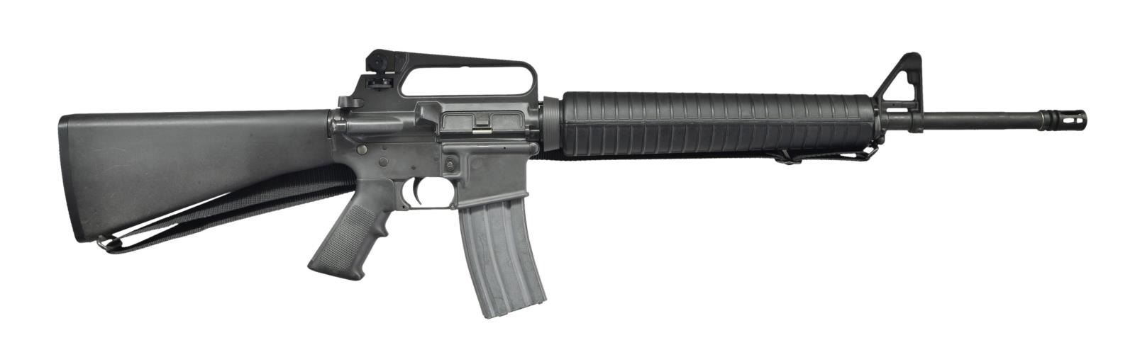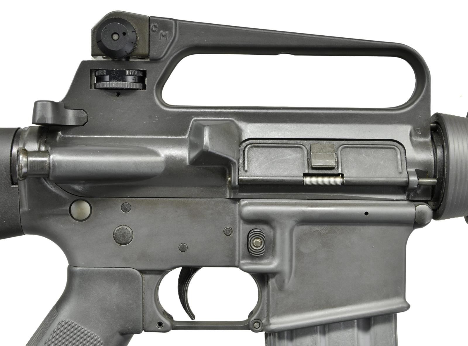Cal. 223. S# MH066789. Bbl. 20". Heavy barrel marked; "CMP 5.56 NATO 1/7 HBAR" terminated w/ threaded muzzle, sporting A2 flash hider. Protected post front sight / gas block / sling swivel w/ no bayonet lug. 11.5" round A2 handguards secured w/ tapered delta ring. Carry handle upper receiver w/ round forward assist, brass deflector & E2 adjustable sights. Lower receiver marked on right side; "SPORTER / MATCH HBAR / CAL .223" & serial number w/Colt logo on mag well. Marked above trigger; "COLT'S MFG. CO. INC. / HARTFORD CONN. / USA". Lower receiver has factory blind pinned block as well as matching slotted bolt carrier. 10.5" A2 shoulder stock w/ trap door, containing cleaning kit rod & brush. Black nylon sling. MAGS: 1 aluminum 30 rd Adventureline. CONDITION: Finish is complete & consistent w/ very little indication of prior use. No noticeable blemishing. Bore is bright w/ strong rifling. Fire control mechanism appears to function correctly when cycled by hand. (23-1134/JZ). MODERN. $700-1,000.