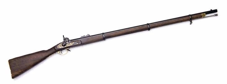 Reproduction of Model 1853 Enfield rifled musket purchased in England by the Confederates. Load with 60 grains of FFg black powder and .570 patched round ball or .577 Minnie ball. Slightly used.