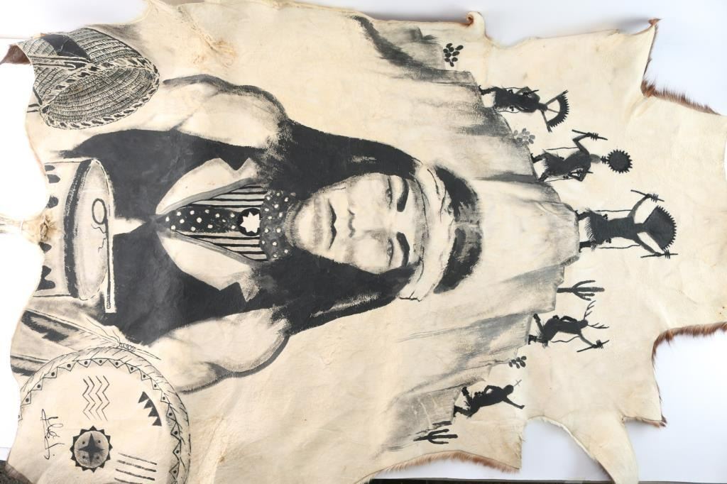 With Indian Brave And Dancers , Signed, Measures 49"x36"