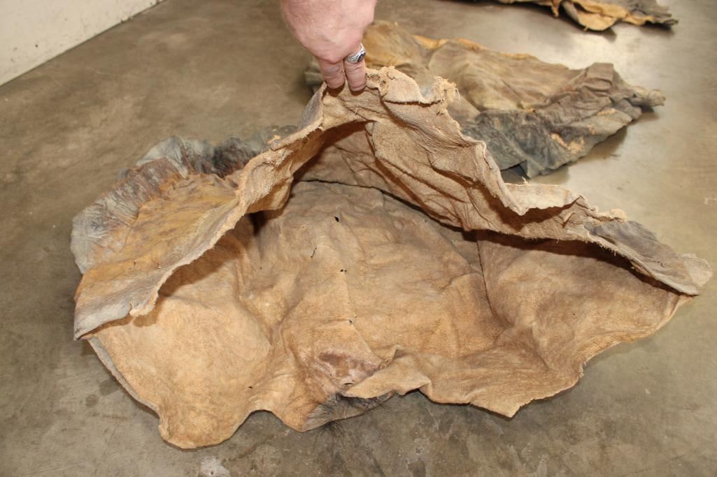 2 Tanned African ELEPHANT Ears (front and back of both). They are stiff around the edges. (ONE$) TAXIDERMY HIDES