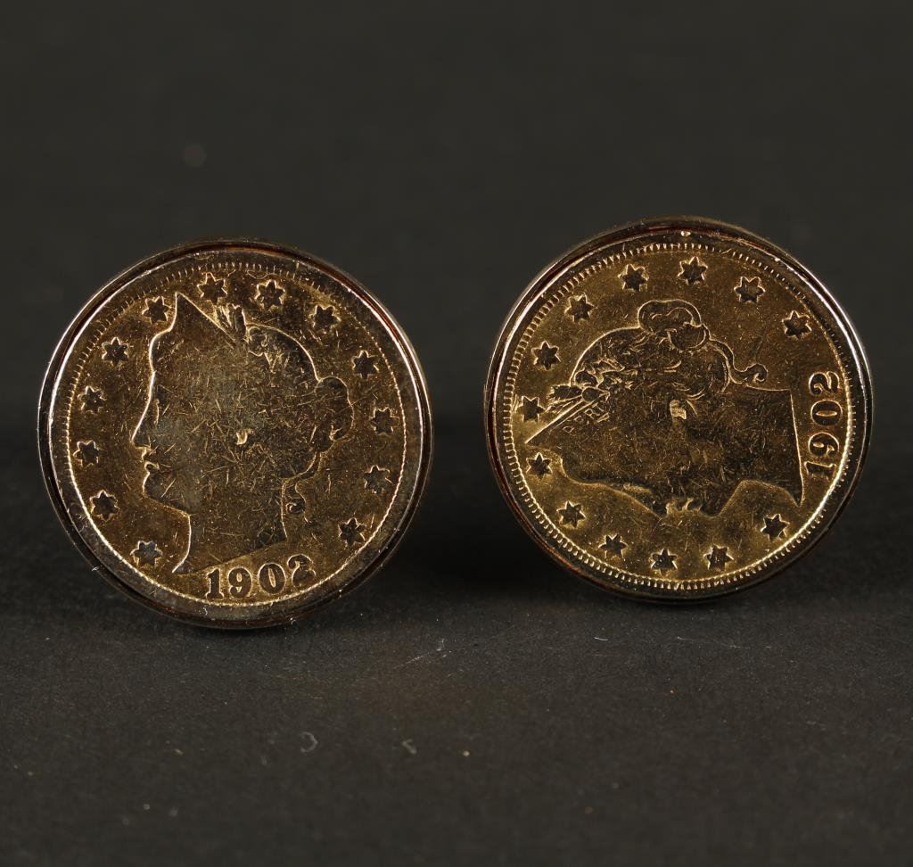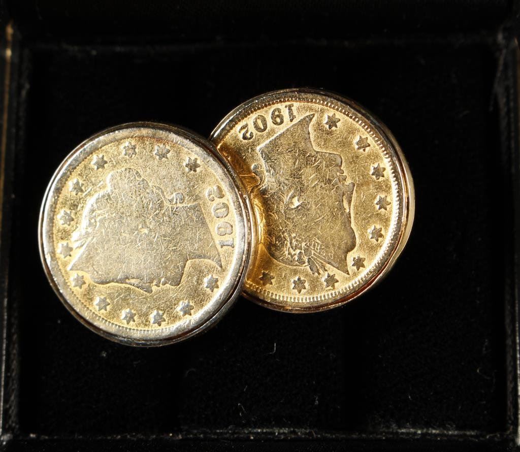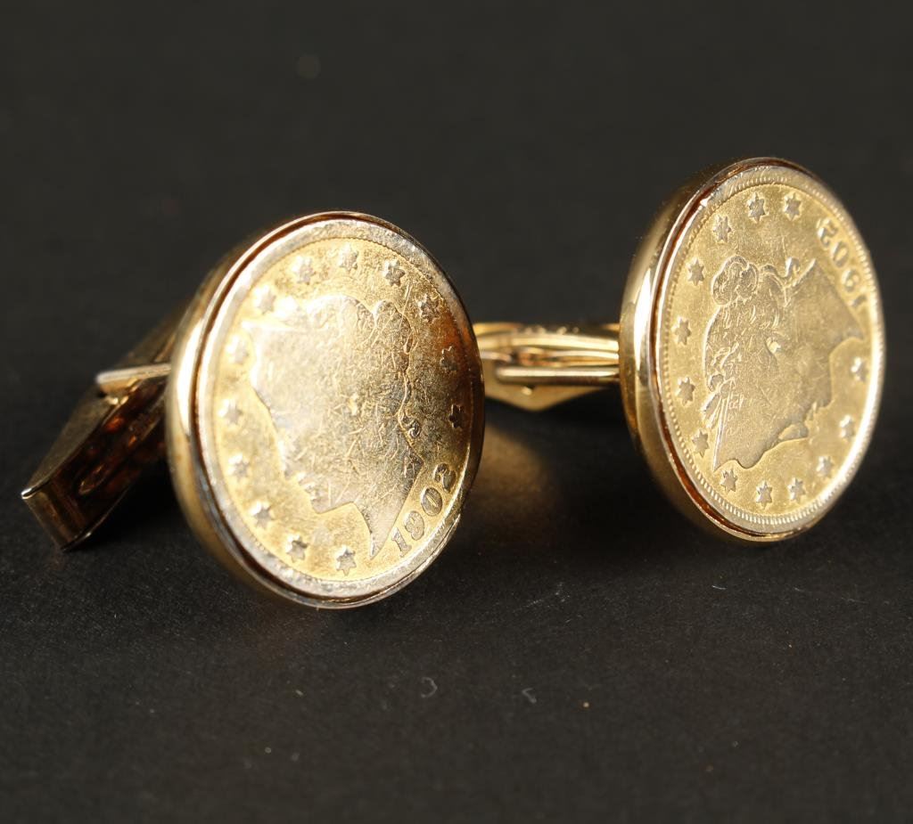 Pair of U.S. silver coins gold plated over sterling. Purchased Neiman Marcus. Est.: $75-$150