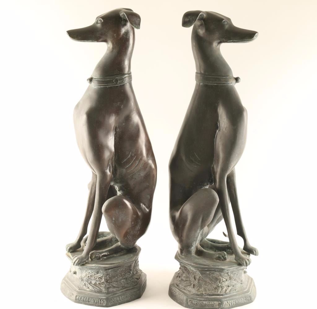 All metal construction using pot and cast and lost wax method. Most likely plum bronze. Made by Jules Moigniez, signed on base. Measure 32"h x 8 1/2" w. Both show good patina and are in overall very good condition. Signed on base.