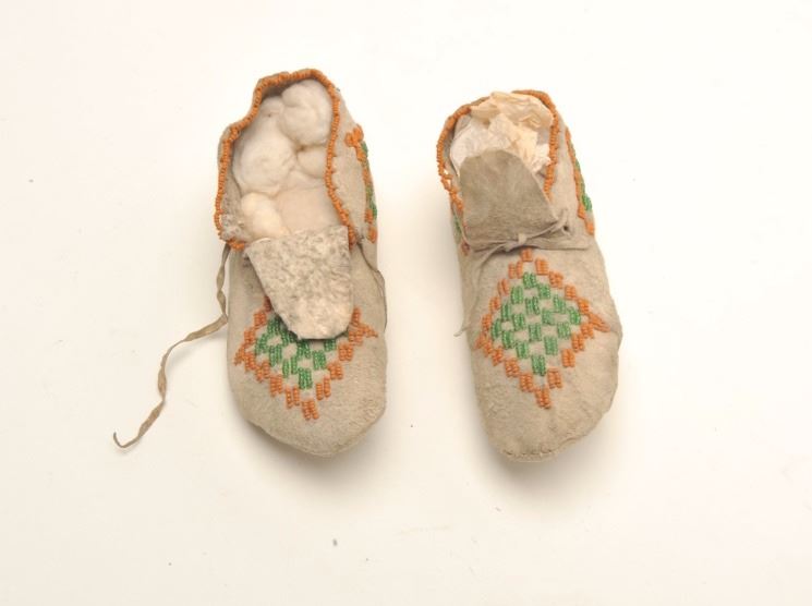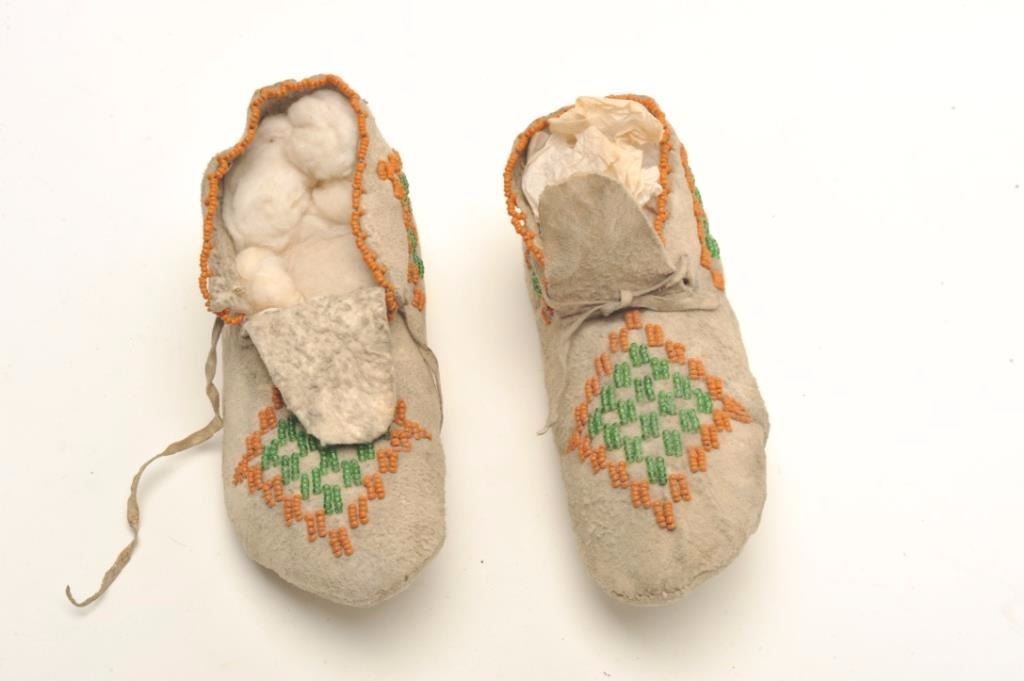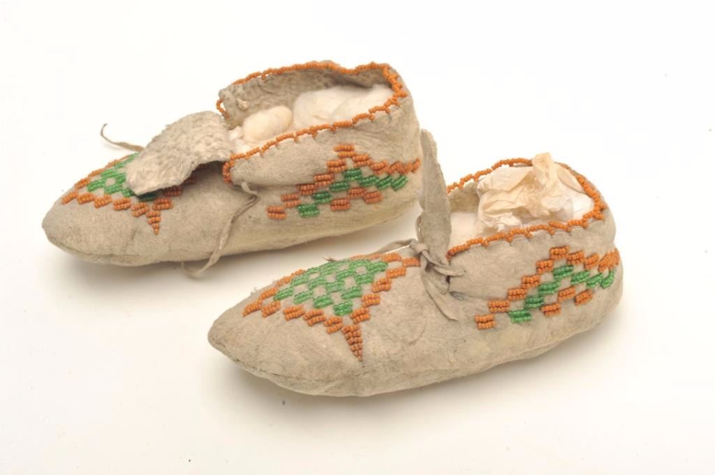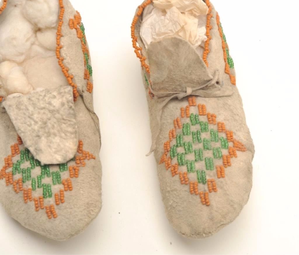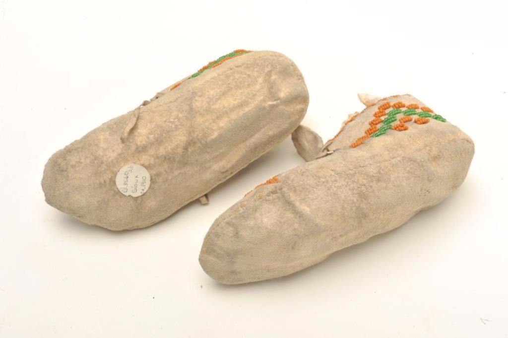 Pair of child’s beaded moccasins; may be Sioux and ca. early 1900’s. Est.: $150-$300.