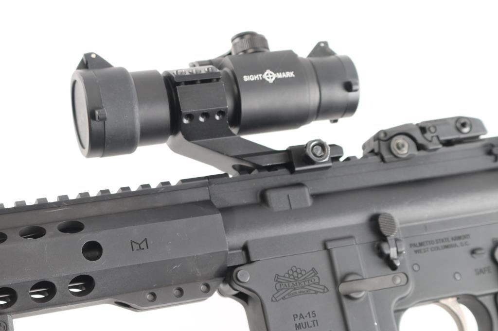 Muzzle device with 13 inch barrel, bore is very good. Pistol Length gas system. MagPul flip up sights with Sight Mark red dot in working order with mount. Manual flip safety, forward assist and shell deflector M-Lok hand guard with top rail and hand rest, MagPul MOE grip with storage. Shockwave Technologies blade pistol stabilizer. No mag included. Retains 95% of finish.